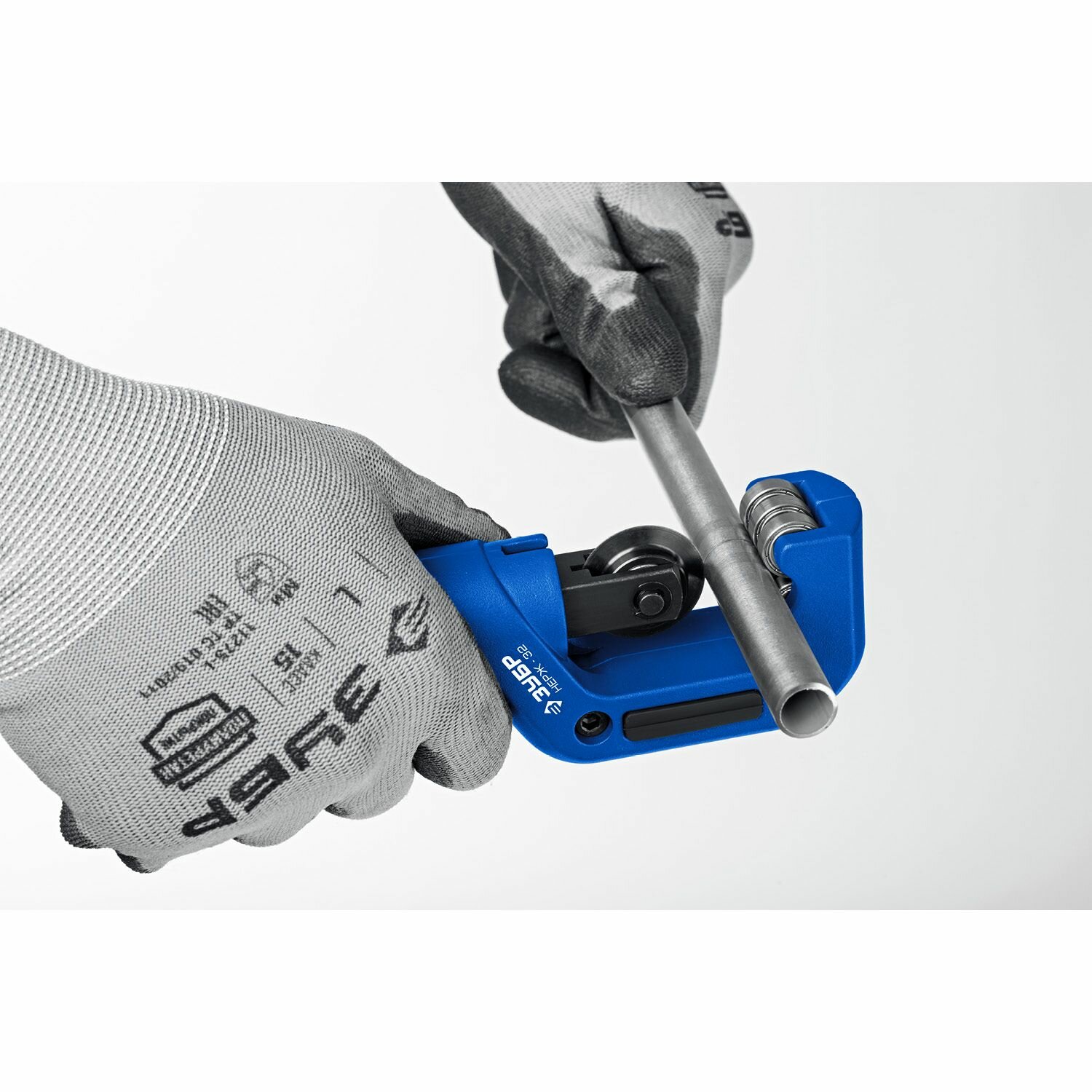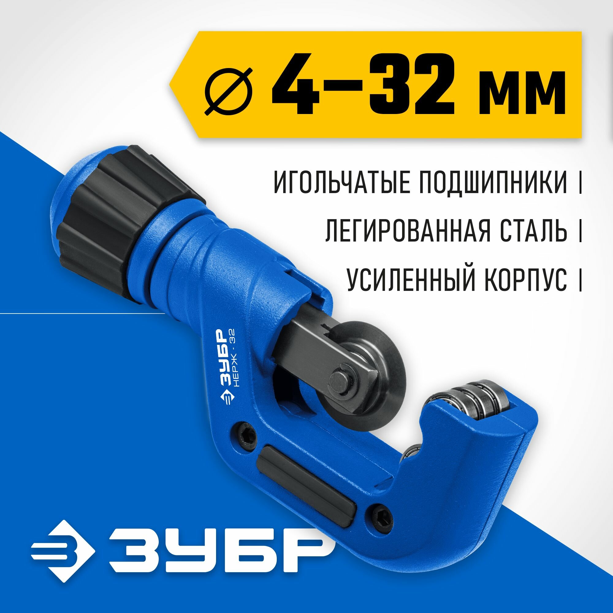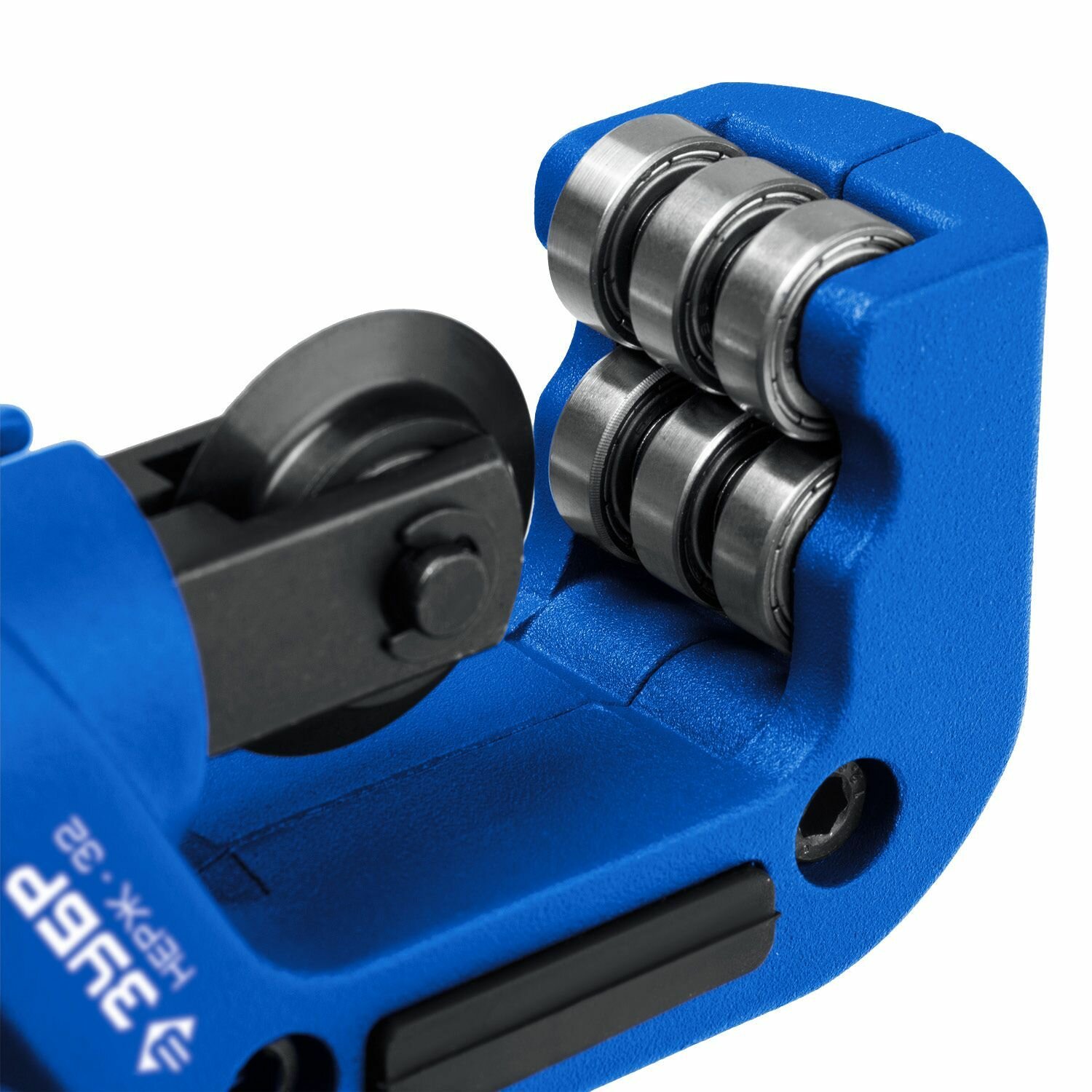 Труборез для меди и алюминия ЗУБР Универсал-42 Профессионал 23850 предназначен для резки труб из цветных металлов диаметром 6–42 мм.Преимущества Широкий диапазон диаметров: труборез подходит для труб из меди и алюминия диаметром от 6 до 42 мм Качественный рез: инструмент обеспечивает точный и ровный рез благодаря закалённому режущему ролику из легированной стали Прочность и долговечность: металлический корпус и сменный режущий элемент гарантируют долгий срок службы Универсальность: труборез подходит для разных видов медных, алюминиевых, латунных и бронзовых труб с толщиной стенки до 2 мм Удобство использования: точная система подачи ролика облегчает процесс резки и делает его более комфортным