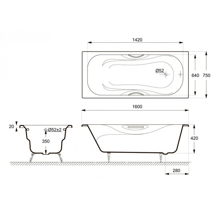 | Покрытие ванны | противоскользящее |