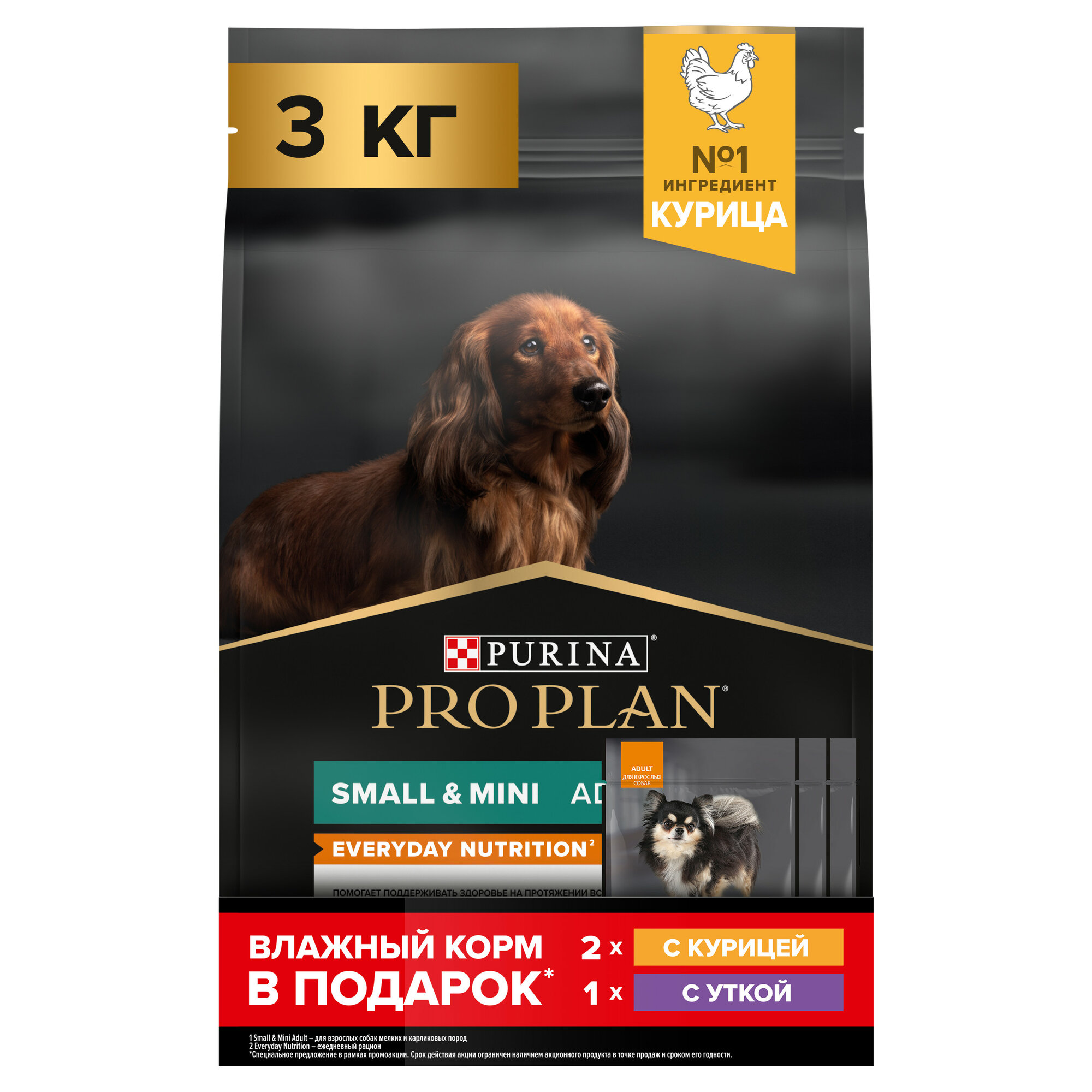 Pro Plan Small & Mini Adult корм для взрослых собак мелких и карликовых пород (Курица 3 кг. + 3 пауча) Purina Pro Plan