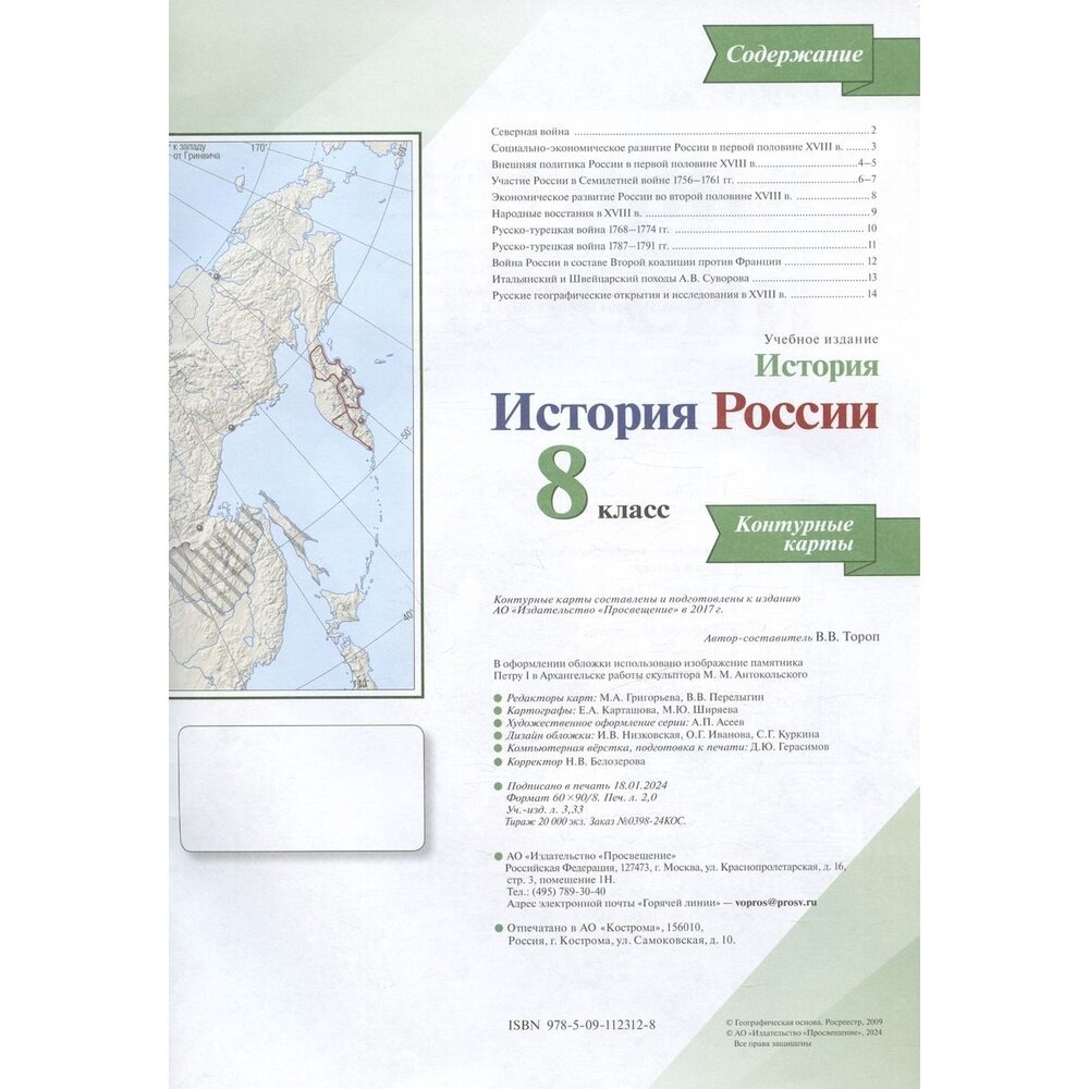 История. История России. 8 класс. Контурные карты (Валерия Валерьевна Тороп); Просвещение, 2025