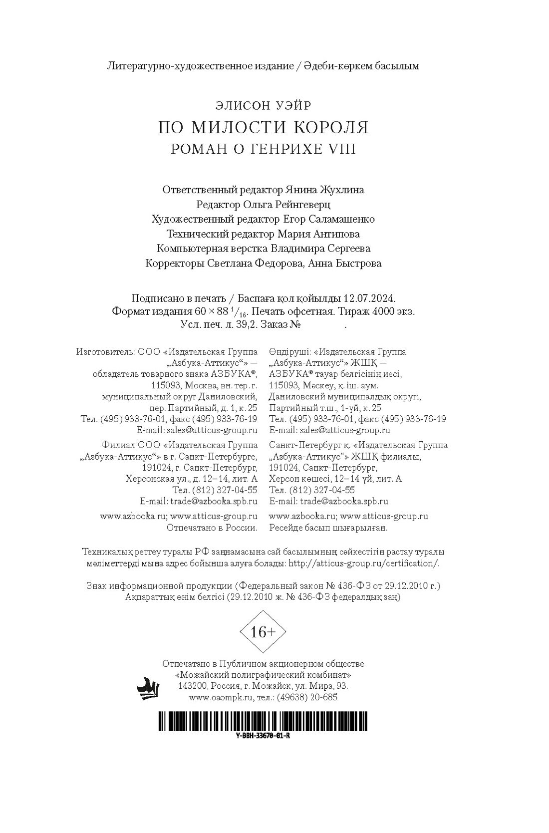 По милости короля. Роман о Генрихе VIII (Элисон Уэйр); Азбука, 2024