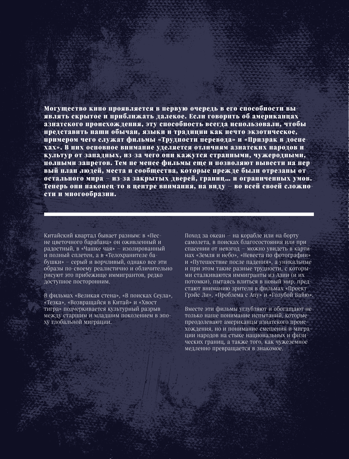 Специально для книги были созданы оригинальные полноцветные иллюстрации, которые позволяют тоньше ощутить азиатскую эстетику, а многочисленные фотографии и печать на плотной бумаге делают ее прекрасным подарком для всех ценителей кинематографа и тех, кто увлекается голливудскими фильмами и восхищается эстетикой Азии!