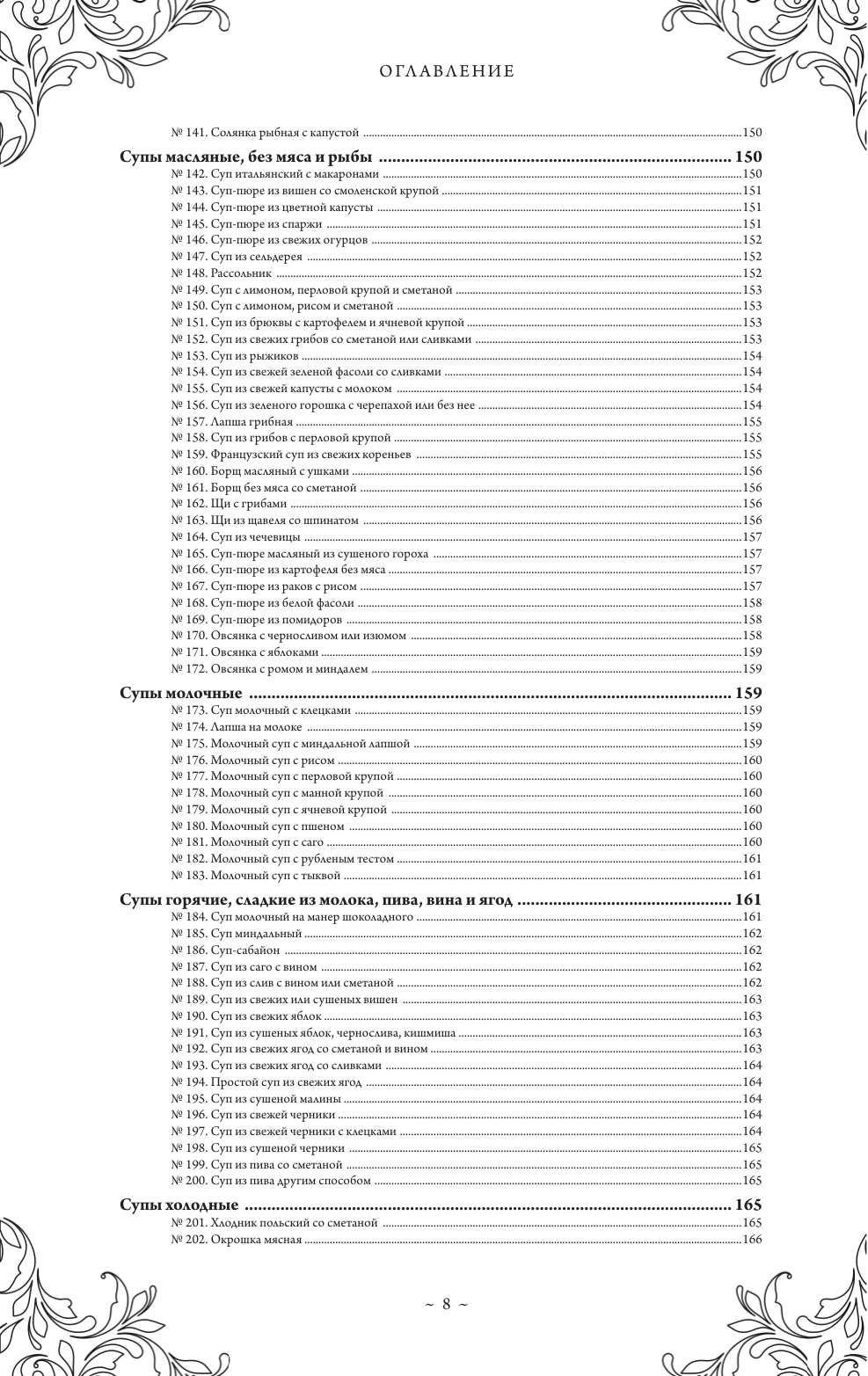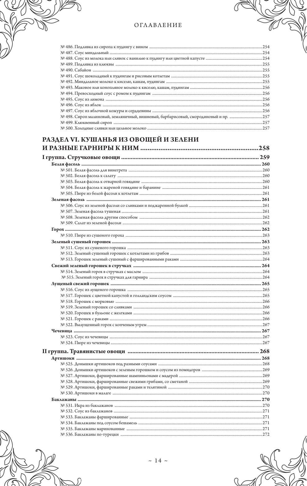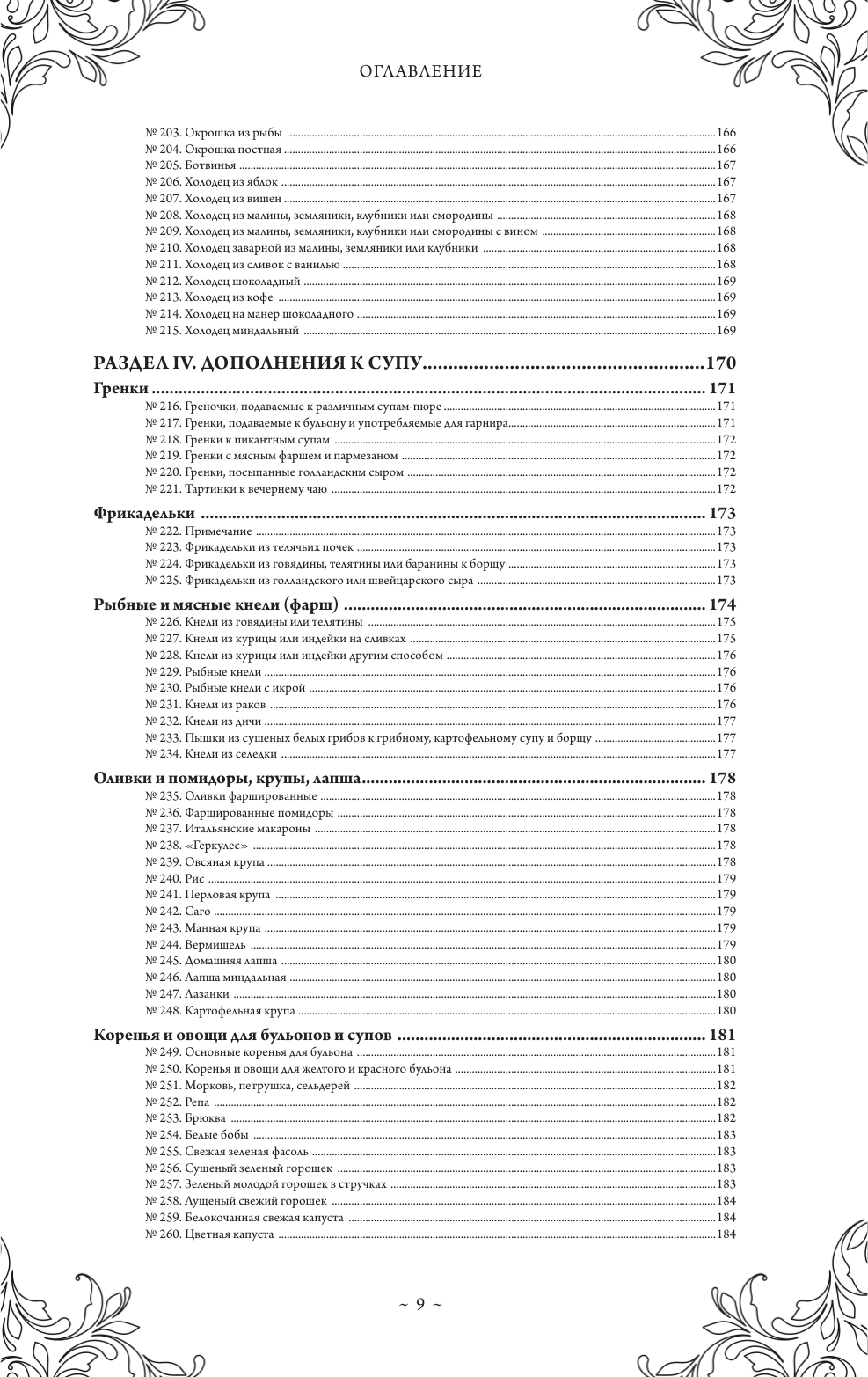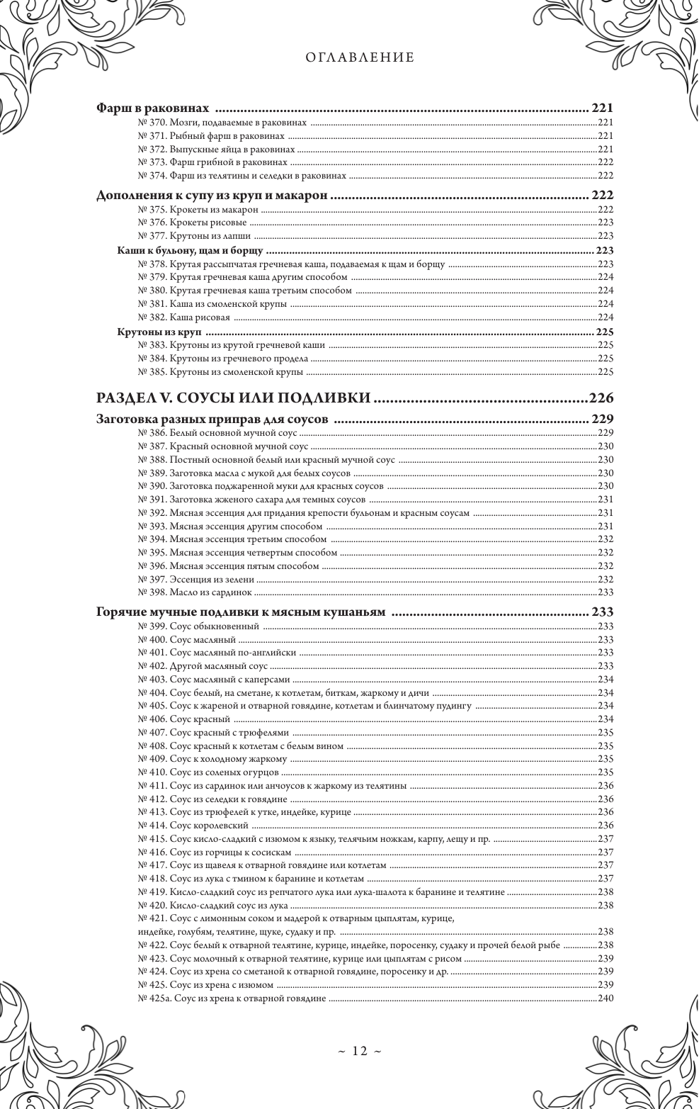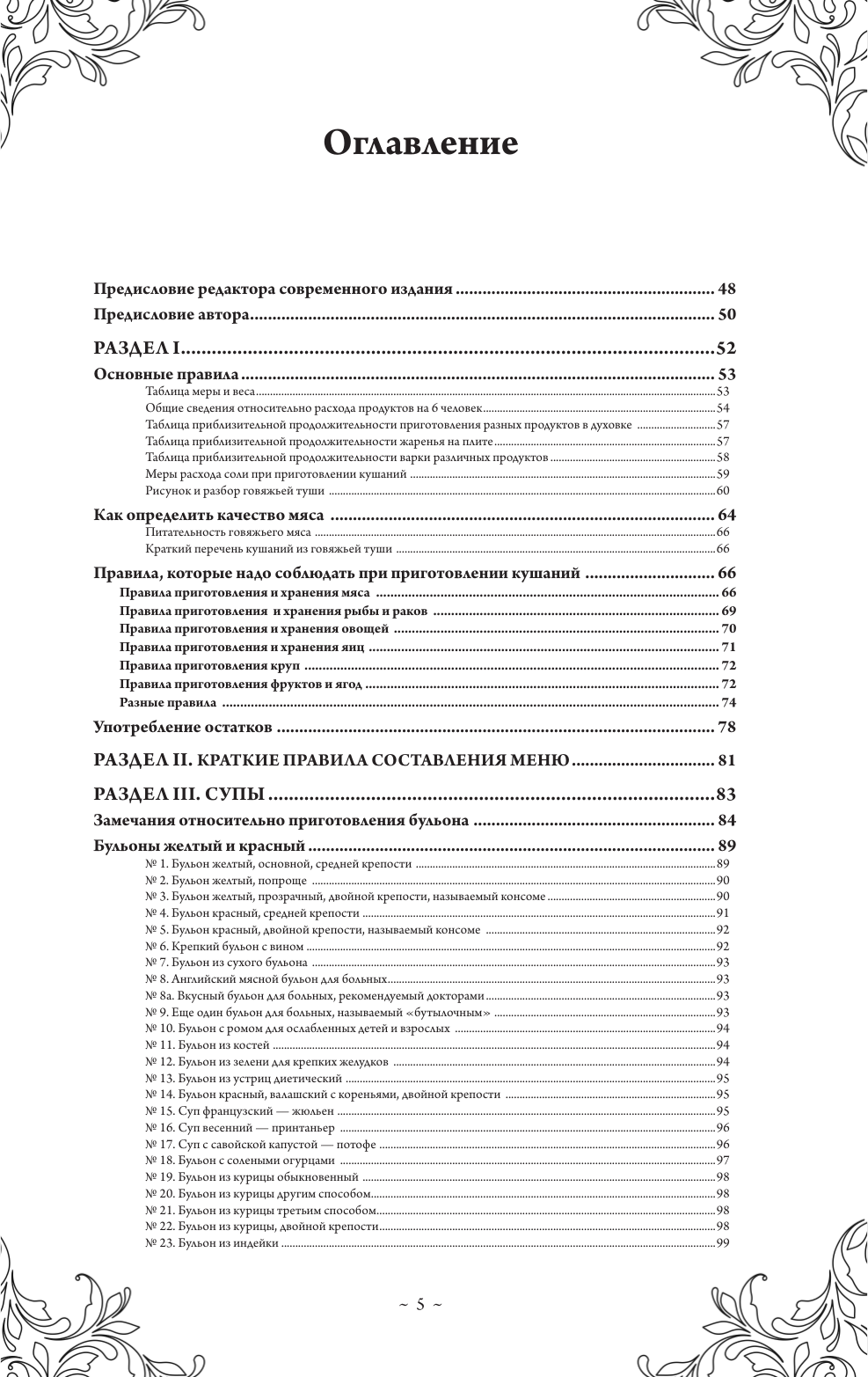 Структура книги остается прежней, но многие рецепты уточнены и прокомментированы. Все основные главы — актуальная кулинарная классика — сохранены: первые и вторые блюда, холодные закуски, соусы, салаты, выпечка и десерты. Добавлены примечания с объяснением малоупотребительных сегодня слов и некоторых терминов и с советами, скажем, чем можно заменить тот или иной редкий в наше время продукт или кухонную утварь. Исправлены несколько вкравшихся в оригинальный текст неточностей и объяснен ряд моментов, способных вызвать непонимание. Надеемся, книга в этой редакции стала понятнее, а рецепты — доступнее для приготовления.