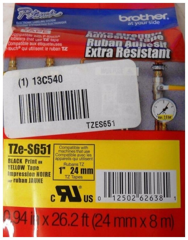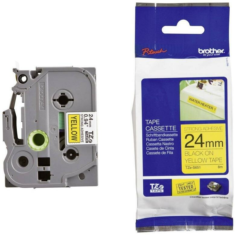 Наклейка ламинированная повышенной адгезии Brother TZES651 — кассета с рулонной сверхклейкой плотной лентой — пленкой для наклеек специально для неровных, грубых, текстурированных поверхностей. В сверхклейких лентах Brother используется более мягкий клеящийся материал, который заполняет выемки шероховатой поверхности и увеличивает таким образом область контакта. Наклейки выдерживают экстремально высокие и низкие температуры (от -80 С до +150 С), защищены от воздействия солнечных лучей, влаги, абразивного изнашивания. Гарантированная безупречная работа принтеров при печати наклеек Brother P-touch.
