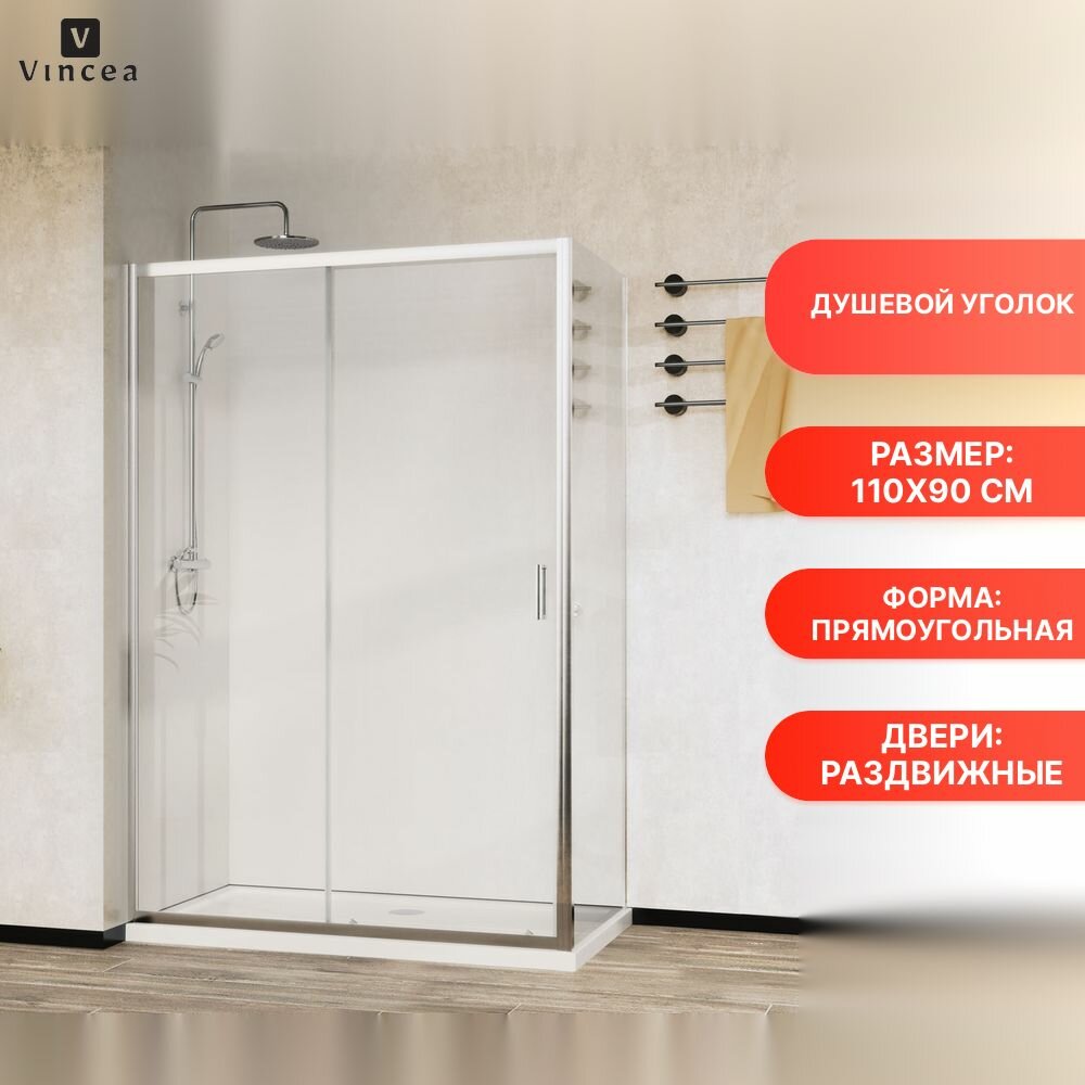 Душевой уголок Vincea City 110х90 профиль хром стекло прозрачное VSR-5CT9011CL