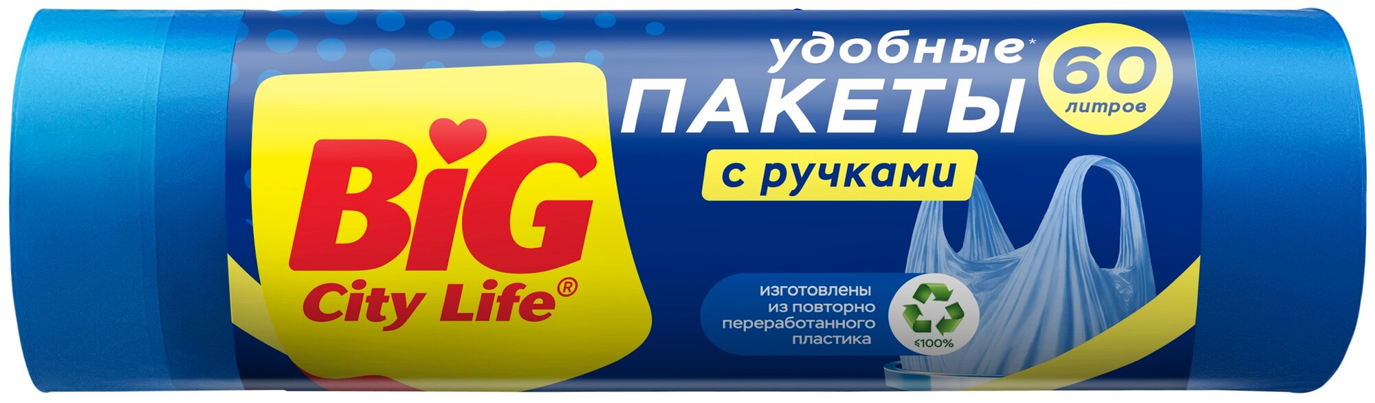 Мешки для мусора с ручками Big sity life 60л 9 мкм 20 шт цвет синий Big City Life