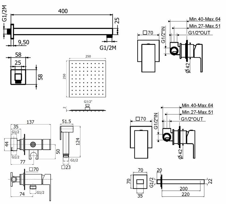 | Габариты верхнего душа | 250 |