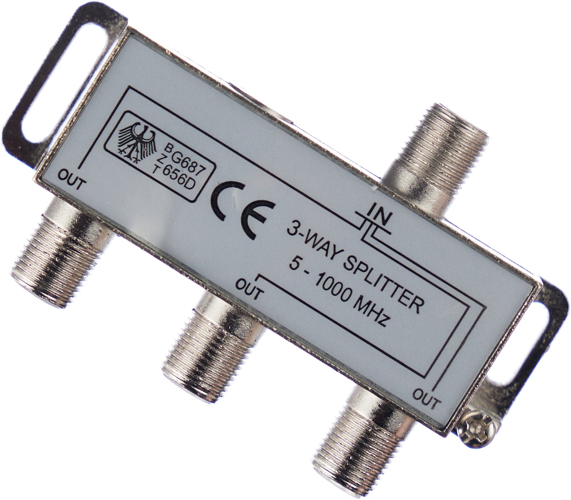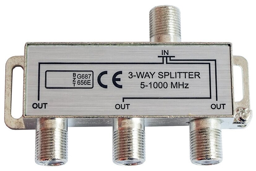 Разветвитель на 3 TV предназначен для деления сигнала, идущего от эфирной антенны на два телевизора с помощью F-разъемов. Представляет собой устройство, заключенное в металлический корпус, оснащенный несколькими разъемами для подключения телевизионных кабелей. Равномерно распределяет сигнал от внешнего источника на нужное количество выходов, к которым подключаются телевизоры или другие приемники ТВ-сигнала (подключение по схеме «звезда»). При встраивании делителя в систему нет необходимости в пайке контактов. Кабели обжимаются при помощи F-штекеров и легко накручиваются на резьбу разъемов сплиттера (входят в комплект) Характеристики устройства Разъем на входе — F-гнездо. Разъем на выходе — F-гнездо. Диапазон частот — 5-1000 МГц Преимущества использования сплиттера Минимальное затухание сигнала. В отличие от последовательной схемы подключения (через проходные розетки) поломка одной из линий или розеток не нарушает работу других. Антенные кабели имеют одну точку выхода.