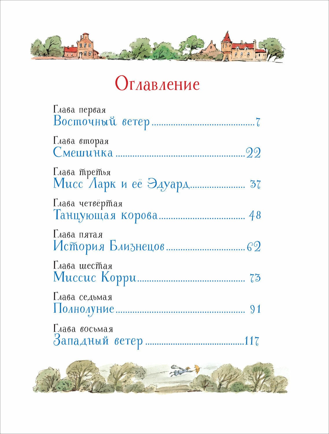 Знаменитая сказочная повесть английской писательницы Памелы Трэверс о необыкновенной няне Мэри Поппинс. Она понимает язык зверей и птиц, знает множество удивительных секретов и даже умеет летать! И разумеется, стоило ей появиться в Доме Номер Семнадцать по Вишнёвому переулку, как жизнь семейства Бэнкс (и особенно Джейн и Майкла) чудесным образом переменилась. Мэри Поппинс научит двум самым главным в жизни вещам: умению видеть сказочное в обычных вещах и не бояться любых перемен. Иллюстрации Вадима Челака.