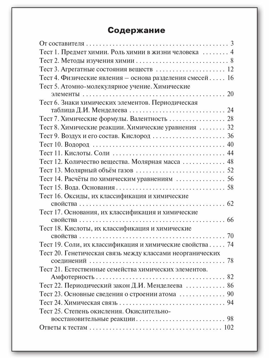 Содержащиеся в пособии контрольно-измерительные материалы (КИМы) соответствуют общим направлениям составления материалов ОГЭ и ЕГЭ по химии, требованиям действующих ФГОС и ФОП ООО по предмету "Химия" (базовый уровень) для 8 класса (приказ Минпросвещения РФ от 18.05.2023 № 370). В конце пособия даны ответы к тестам.