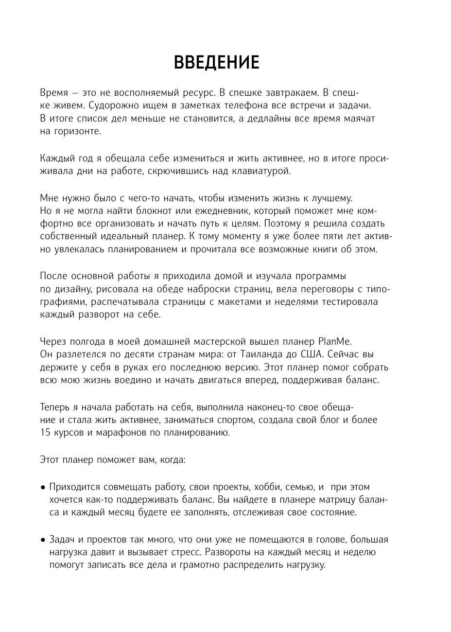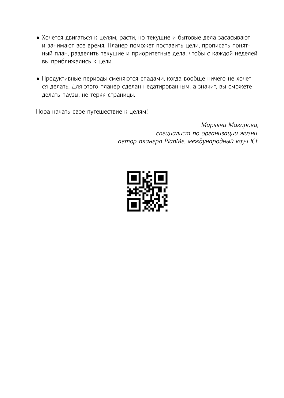Перед вами эффективная методика организации жизни от Марьяны Макаровой, международного коуча IFC. Этой системой пользуются в 10 странах мира. Начните свое путешествие к целям вместе с PLAN ME.