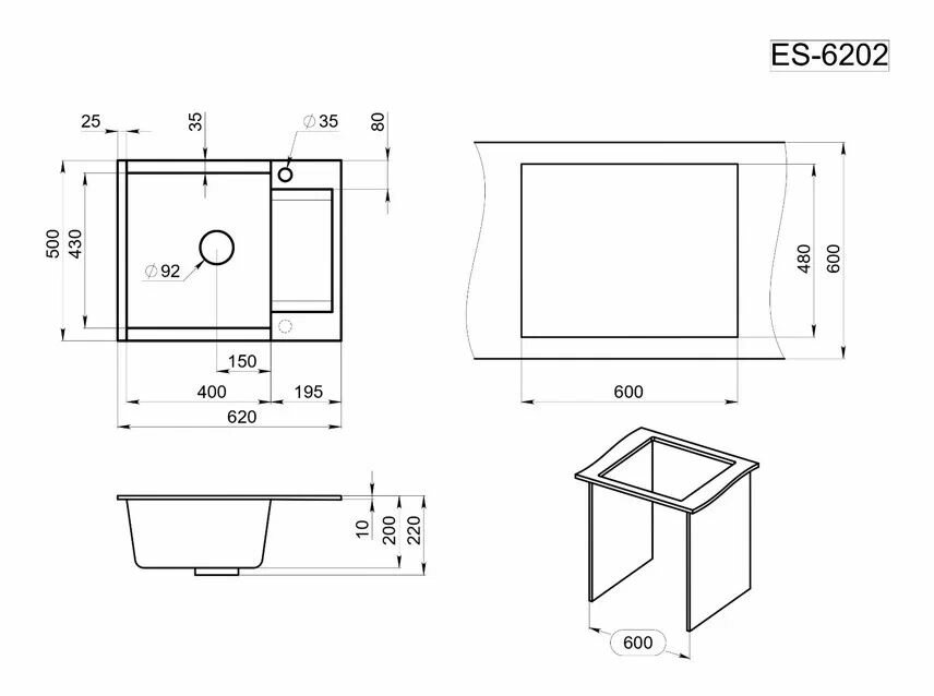 | Толщина материала мойки, мм | 10 |