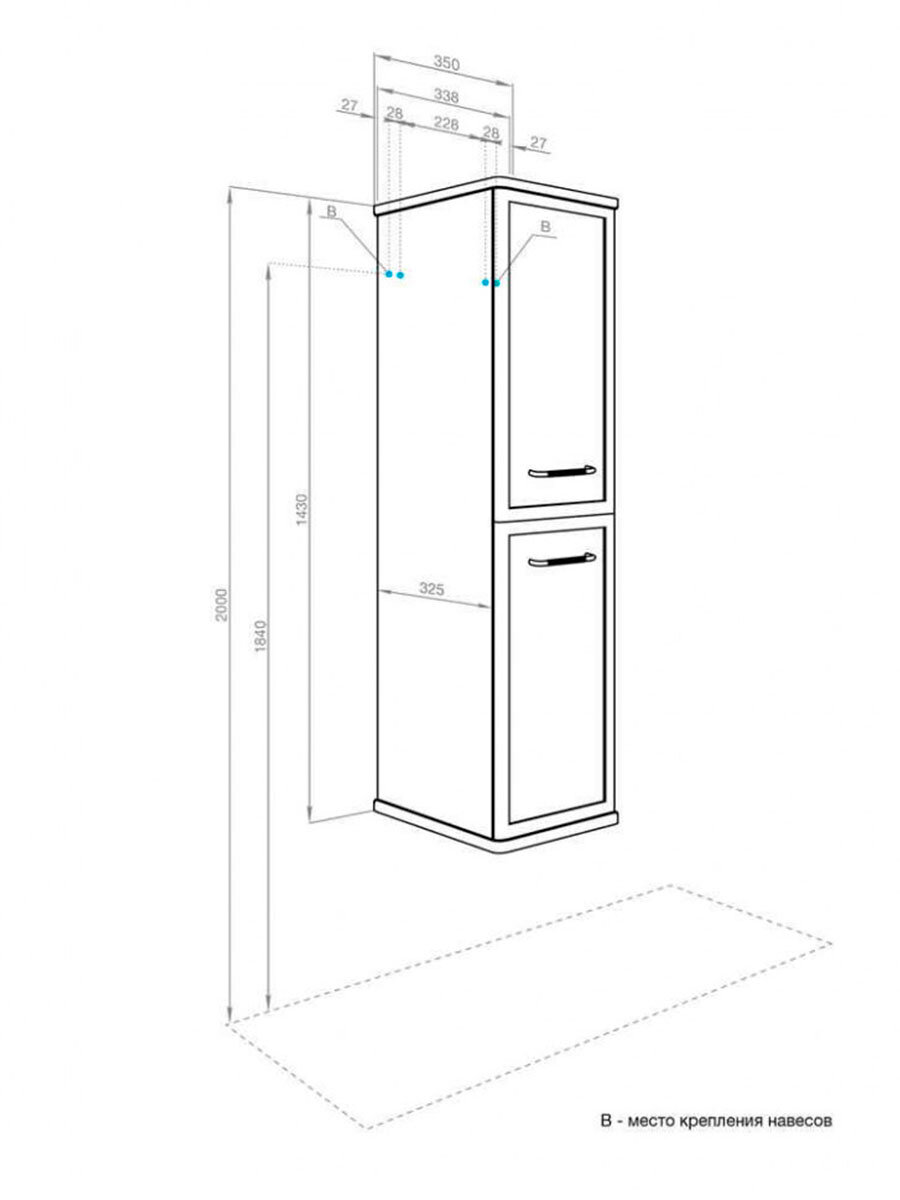 Шкаф-пенал Aquaton Нео-Классика 35 подвесной кипарис 1A284603NC5E0