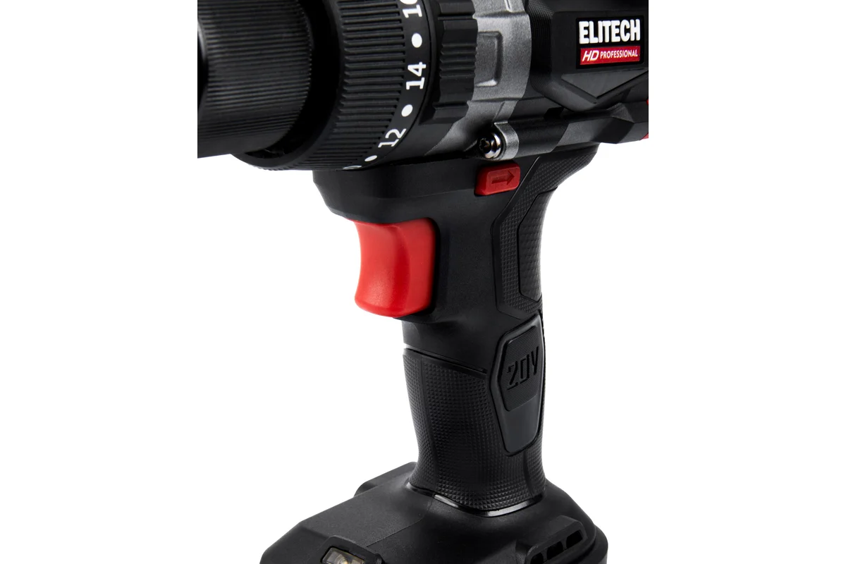 **Дрель-шуруповерт аккумуляторная ударная Elitech HD CD20BL2** — электроинструмент с бесщеточным двигателем, который сочетает в себе высокую надежность, производительность и удобство эксплуатации. Имеет широкое применение — подходит как для решения бытовых задач, так и для ремонтно-строительной деятельности. Устройство оснащено двумя скоростями, что позволяет легко настраивать интенсивность с учетом конкретной задачи. Электроинструмент подходит для подготовки отверстий в цветных и черных металлах, кирпиче, камне, дереве и производных материалах на его основе, разных видах пластика. Наличие встроенной подсветки дает возможность работать в сложных местах и в условиях плохой освещенности.