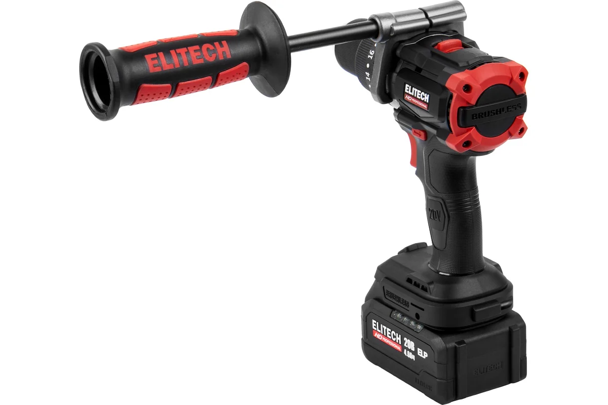 Дрель-шуруповерт аккумуляторная ударная бесщеточная Elitech HD CD20BL2 20 В Li-ion 4 Ач (CD 20BL2)