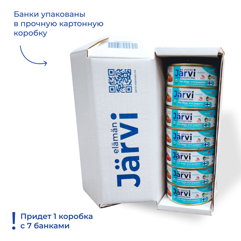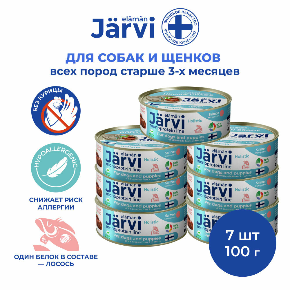 Jarvi монопротеиновые полнорационные консервы для собак и щенков всех пород с 3-х месяцев 100 г. (Лосось)