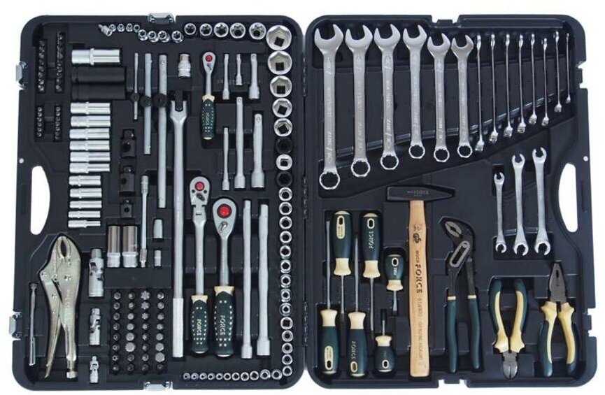| Вид инструментов в составе набора | пассатижикусачкигаечные ключимолотоквороток для головокудлинитель для головоккарданный шарнир для головокторцевые головкиотверточная рукоятка для битключ переставной гаечныйотверткитрещоткабиты |