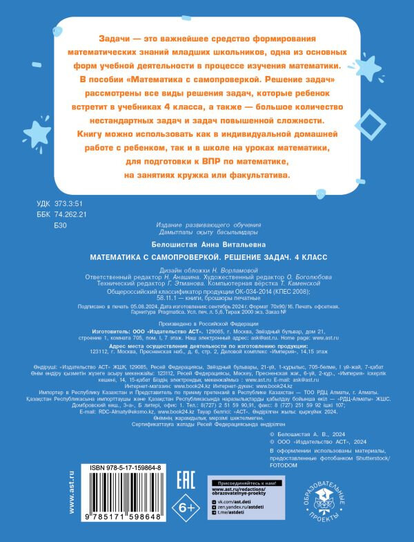 Математика с самопроверкой. Решение задач. 4 класс. (Анна Витальевна Белошистая); АСТ, 2024