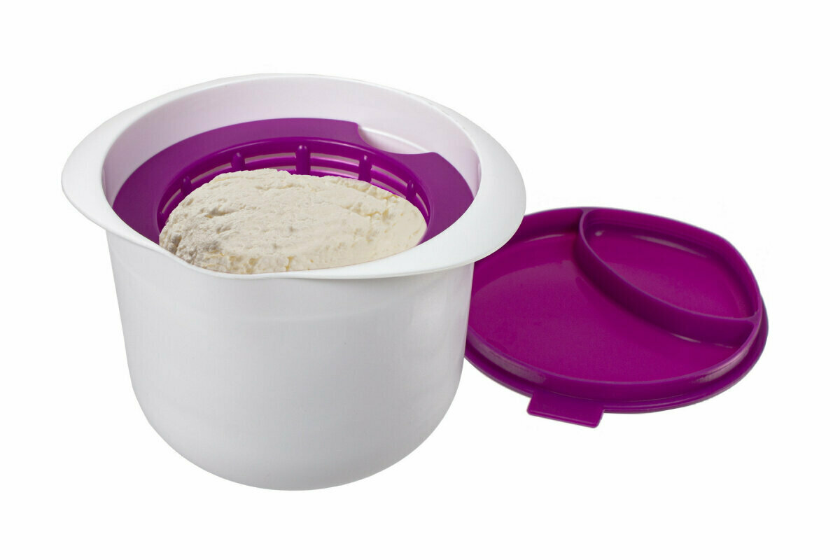 | Комплектация | чаша для молока - 1 шт; емкость-дуршлаг для сбора творога или сыра - 1 шт; крышка - 1 шт |