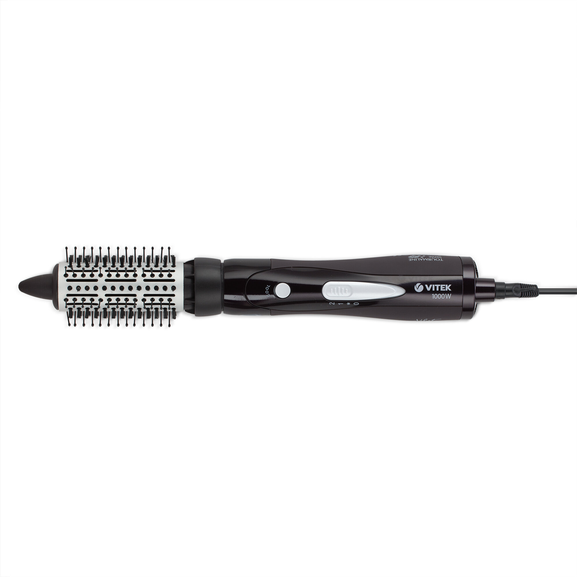 Фен-щетка Vitek VT с комплектом сменных насадок позволяет тщательно и бережно просушить даже густые волосы, не спутывая и не пересушивая их. Прибор оборудован надежным мотором мощностью 1000 Вт и имеет два режима температуры/скорости воздушного потока для бережной укладки или интенсивной сушки волос, а также отдельную кнопку холодного обдува для фиксации прически. Инновационное покрытие выходной решетки Tourmaline Ionic + Ceramic Coating при нагревании образует отрицательные ионы, что способствует уменьшению статического электричества в волосах, делая их гладкими, блестящими и послушными. Эргономичный дизайн прибора и свободное вращение сетевого кабеля обеспечивают максимальный комфорт. Функция автоматического отключения при перегреве гарантирует безопасное использование прибора.