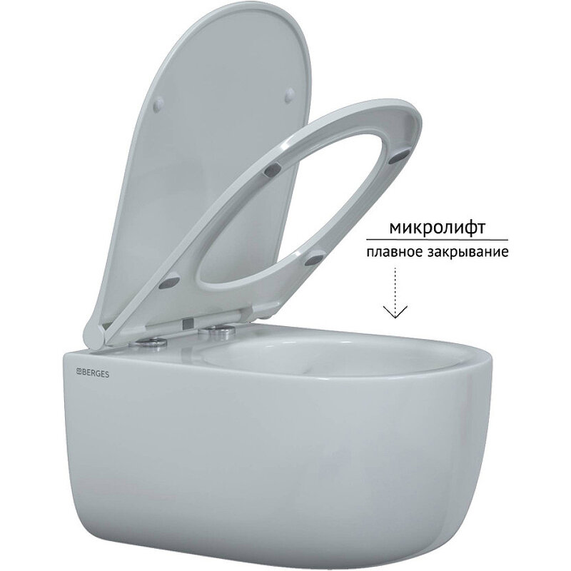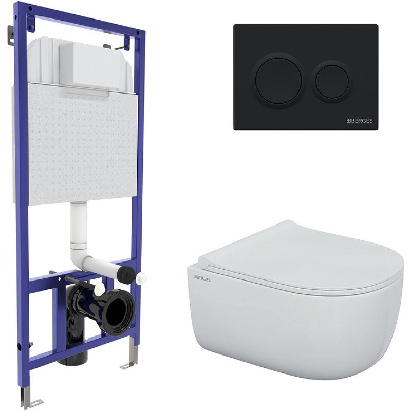 Подвесной унитаз с инсталляцией Berges Novum 43311 кнопка черная, сиденье микролифт, белый
