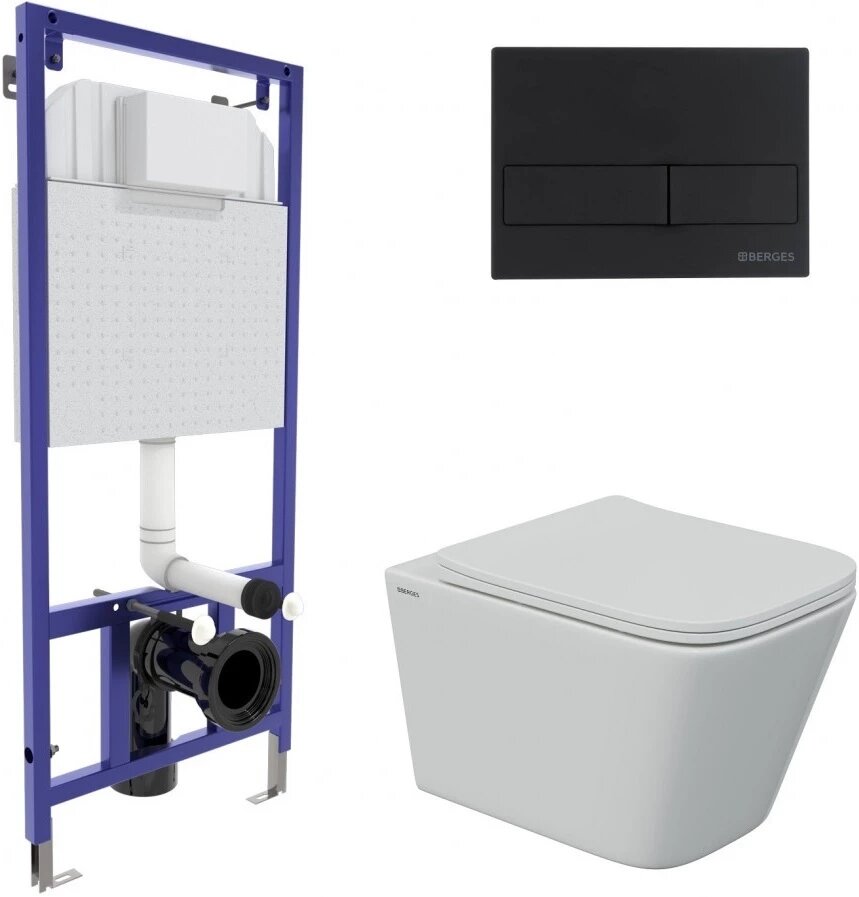 Сервис сравнения цен СкидкаГИД предлагает сравнить цены на товар «Подвесной унитаз с инсталляцией Berges Novum 43243 кнопка черная, сиденье микролифт, белый»