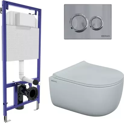 Сервис сравнения цен СкидкаГИД предлагает сравнить цены на товар «Подвесной унитаз с инсталляцией Berges Novum 43249 кнопка хром, сиденье микролифт, белый»