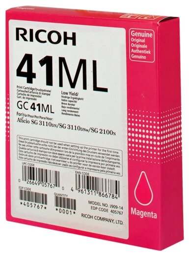 Уникальная технология гелевой печати, разработанная в лабораториях компании Ricoh, позволяет создавать устройства, сочетающие в себе преимущества лазерной и струйной печати. Оригинальный пурпурный картридж Ricoh GC 41МL для гелевых струйных принтеров Ricoh Aficio , ресурс такого картриджа 600 страниц.