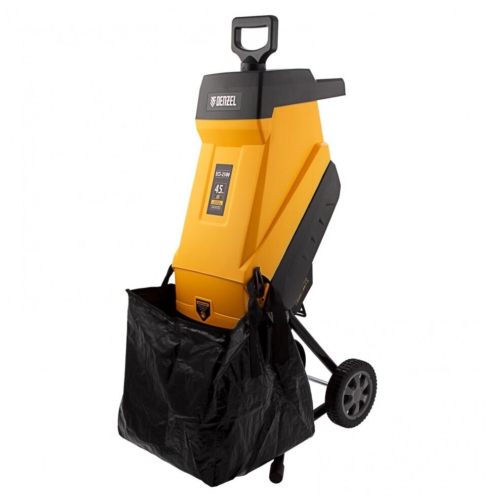 Измельчитель садовый электрический Denzel ECS-2500 (измельчение до 45 мм травосборник: мешок для мульчи)