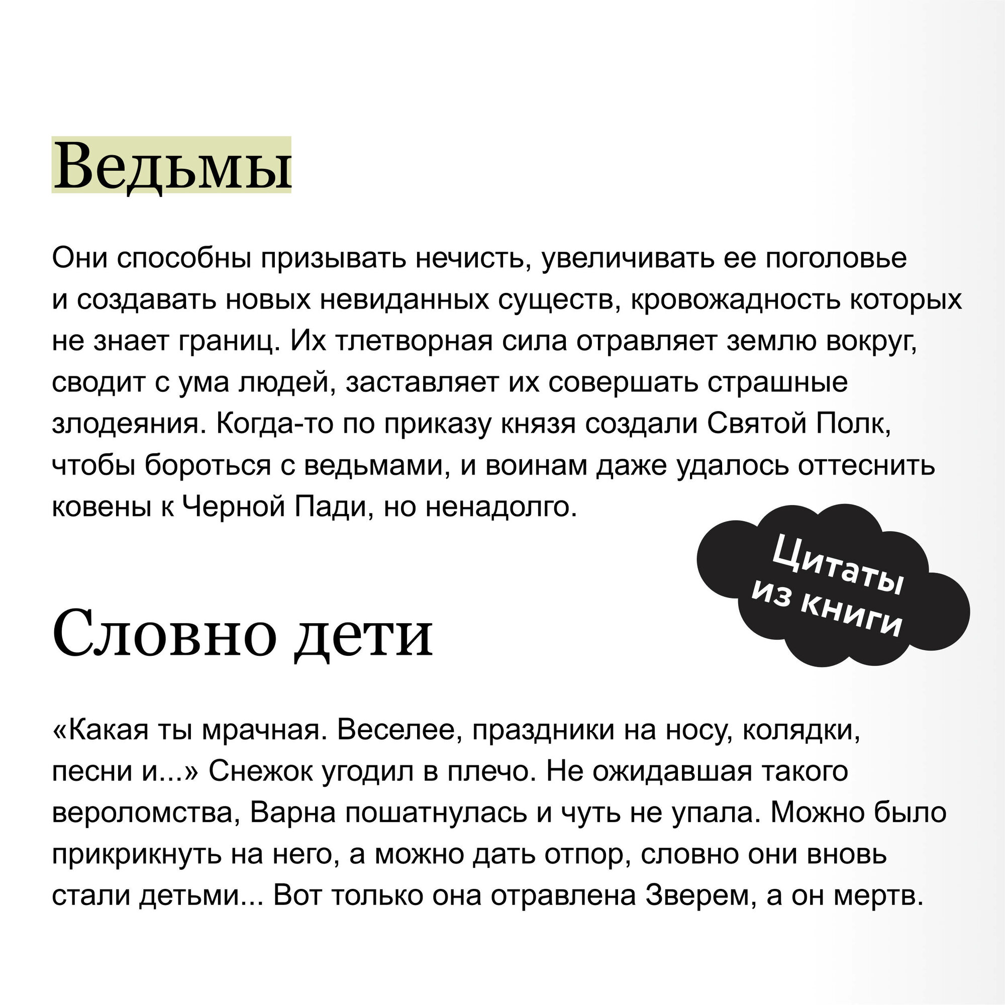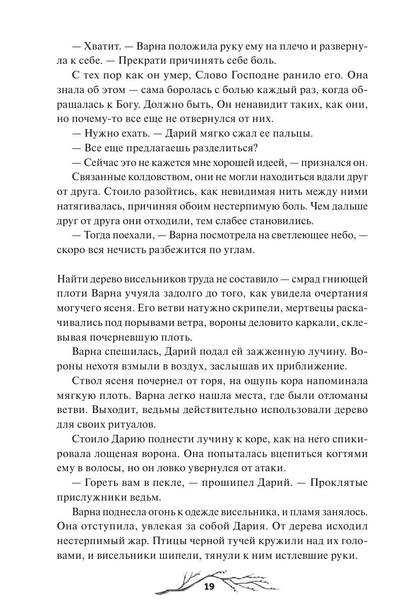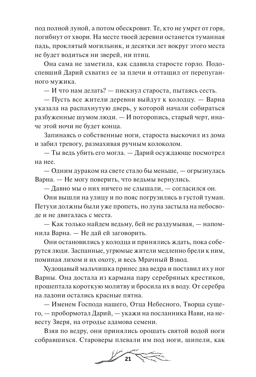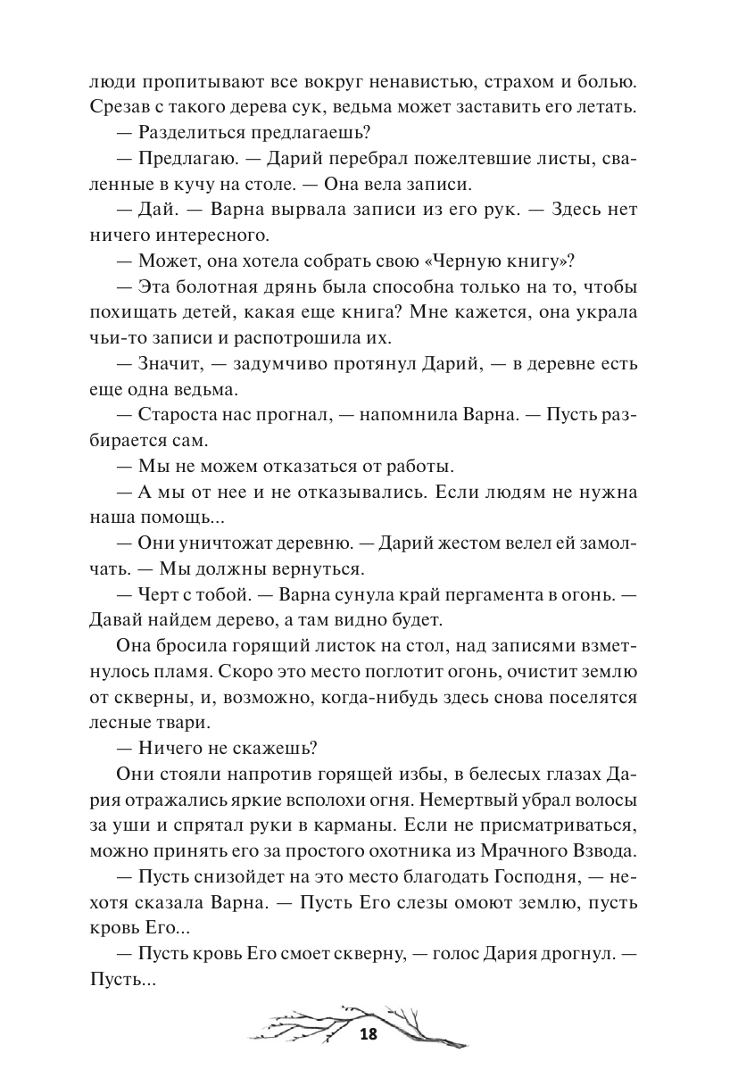 Их было трое — Варна, Дарий и Свят. Старшая дочь, брошенная отцом в лесу, сирота, метивший в святые, и нелюдимый звереныш, не расстающийся с мечом. Они росли вместе, пока однажды судьба не развела их дороги: двое присоединились к Мрачному Взводу, а третий вступил в Святой Полк. Охотница, в крови которой течет сила Зверя, мертвый мальчишка, проклятый и вечно юный, и светлый воин, тень которого оставляет кровавый след. Они встречаются вновь, чтобы разобраться с ошибками прошлого и истребить ведьм, десять лет назад загнанных в Черную Падь. Но так ли все просто, когда врагу доверяешь больше, чем другу?