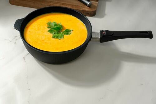 Швейцарская посуда привлекательна своим совершенством. И опытному повару, и начинающему кулинару намного легче работать, когда под рукой есть самые качественные и современные приспособления. Её создатели предусмотрели всё: удобство эксплуатации, стойкость покрытия, идеальный баланс и пропорции. Всё это для идеального результата! Основа литой алюминий, новейшее антипригарное покрытие из нанокомпозина с алмазной крошкой. Посуду вместе с крышками Swiss Diamond можно использовать в духовом шкафу до 260 градусов, предварительно сняв съемную ручку, подходит под все виды варочных поверхностей, в том числе к индукционной. Съемная эргономичная ручка сэкономит место при хранении посуды.