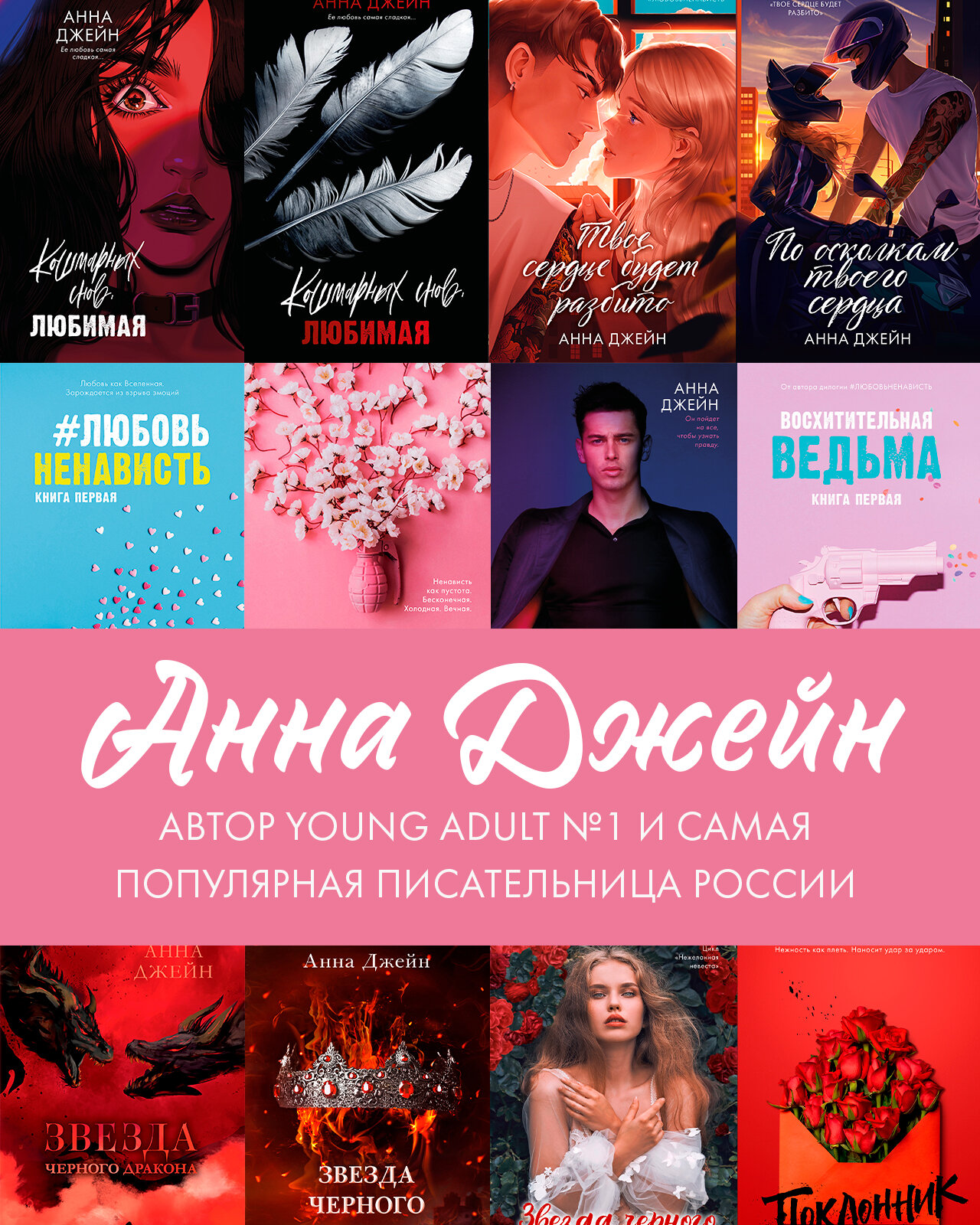 Анна Джейн — самый популярный в нашей стране автор любовных и янг-эдалт романов для подростков 16+ и взрослых. Ее книги любимы читателями за невероятно сильные чувства героев, интриги, тайны, юмор и головокружительные сюжетные повороты, которые держат в напряжении и не отпускают до последней страницы.