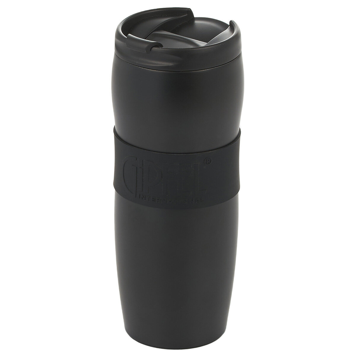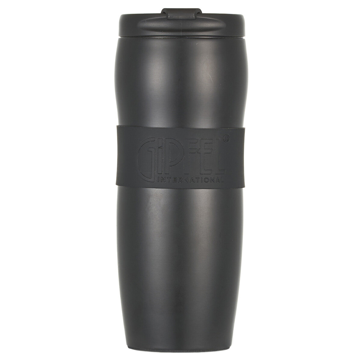 У кружки оригинальный дизайн. Она выполнена в благородном черном цвете, обтекаемой формы. Мягкая силиконовая вставка с логотипом Gipfel не только элемент декора, за нее удобно держать изделие.
