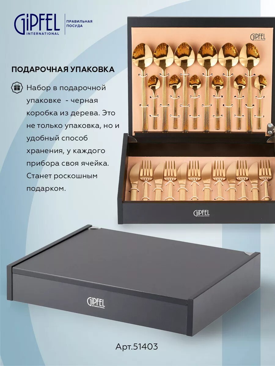 На сегодняшний день товар «Набор столовых приборов Gipfel Dakar 51403 24 предмета» можно купить с кешбеком в 1 магазине: Яндекс.Маркет
