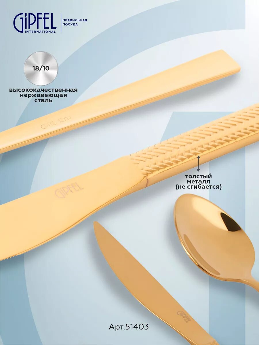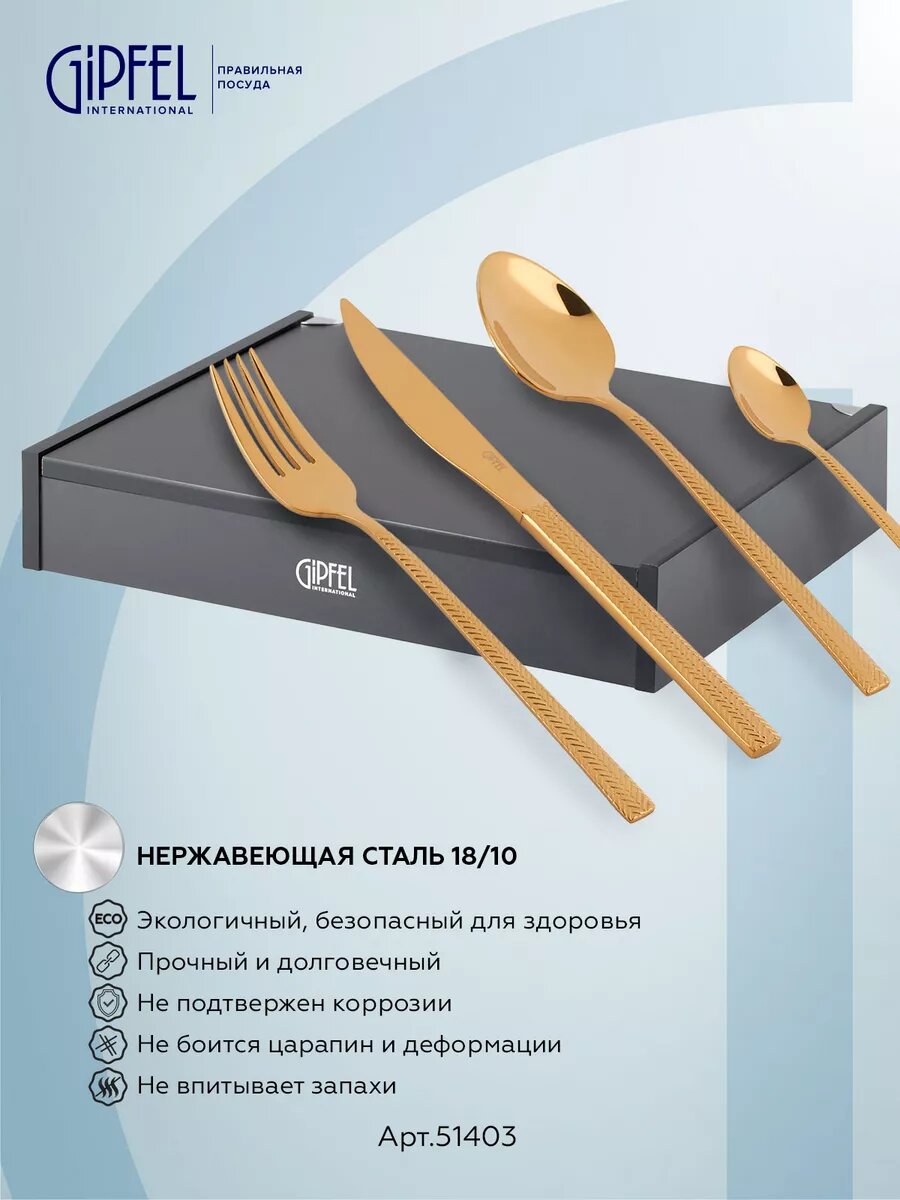 Набор столовых приборов Gipfel Dakar – сочетание роскоши и элегантности. Изготовлен из нержавеющей стали 18/10, безопасного для здоровья металла, прочного и долговечного.