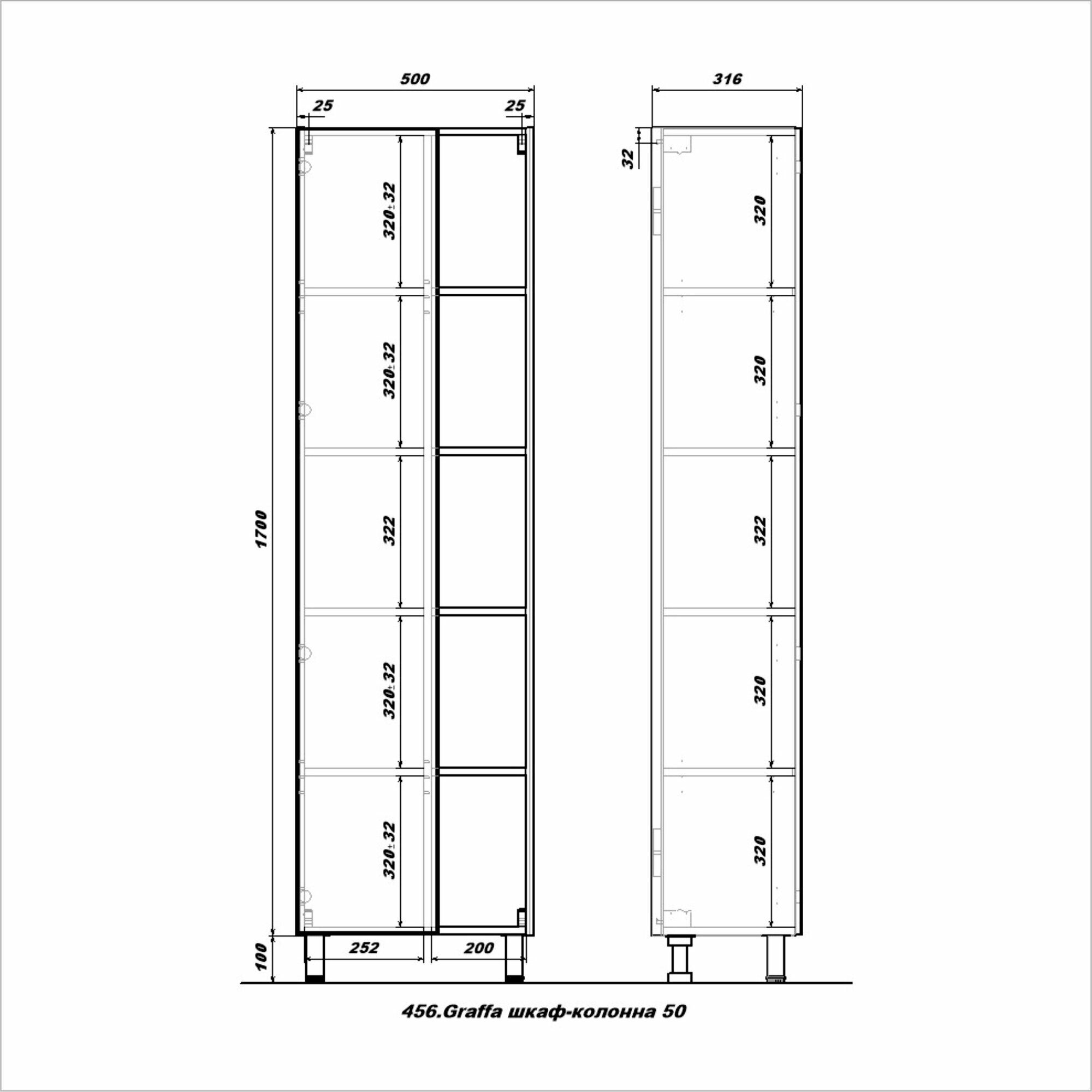 В производстве используют только качественные влагостойкие материалы (ЛДСП), в составе которых отсутствуют опасные вещества. Серия Graffa отличается превосходным дизайном с соблюдением всех существенных элементов. Шкаф-пенал предусматривает удобную и вместительную систему хранения, состоящую из дверей, полочек. Важные габариты изделия: ширина 50 см, глубина 31.6 см, высота 170 см.