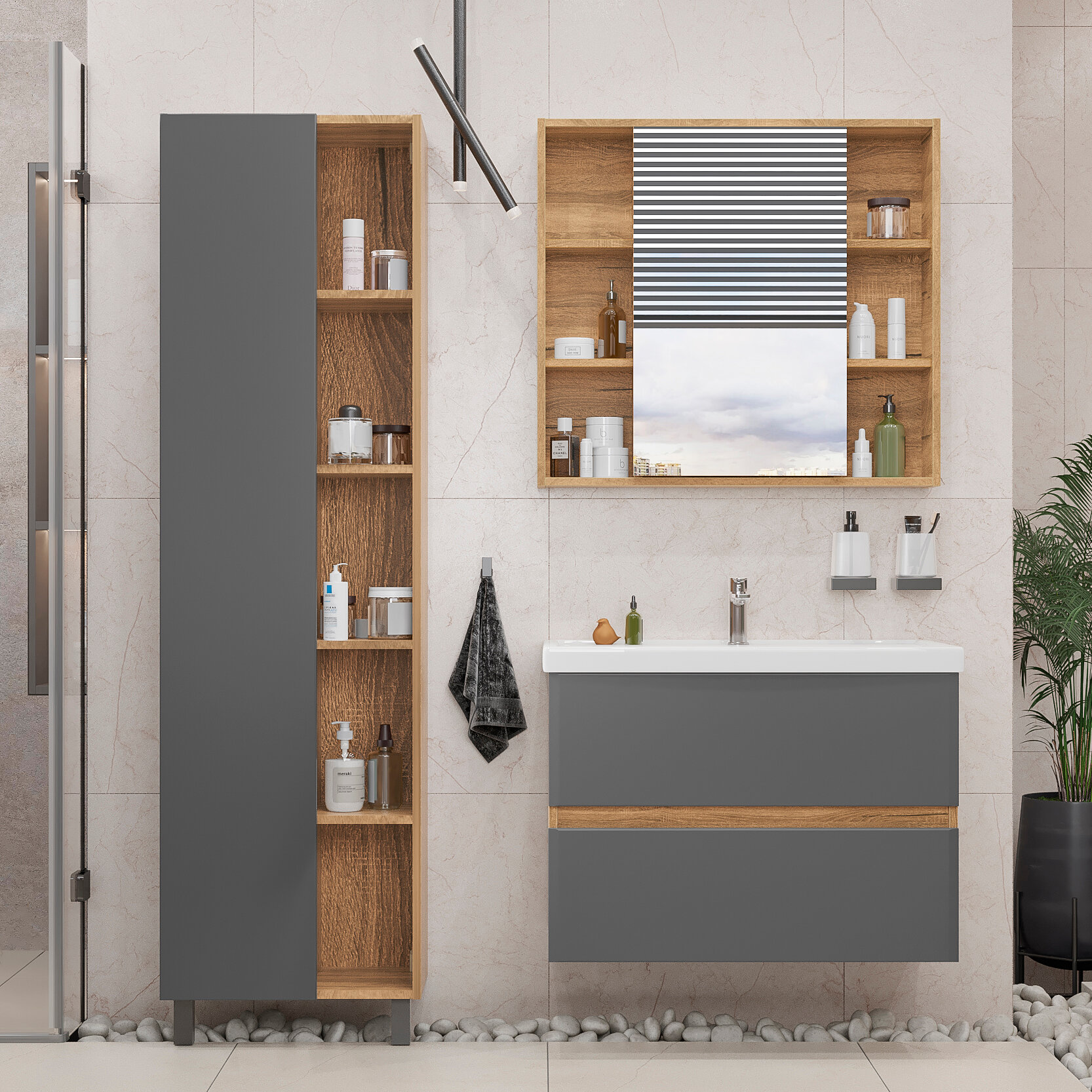 Шкаф пенал для ванной Sanstar Graffa 50 напольный отличное решение для создания комфортной атмосферы в любой ванной комнате. Подвесной способ установки дает возможность не только визуально увеличить пространство, но и обеспечивает быстрый и удобный доступ для уборки.