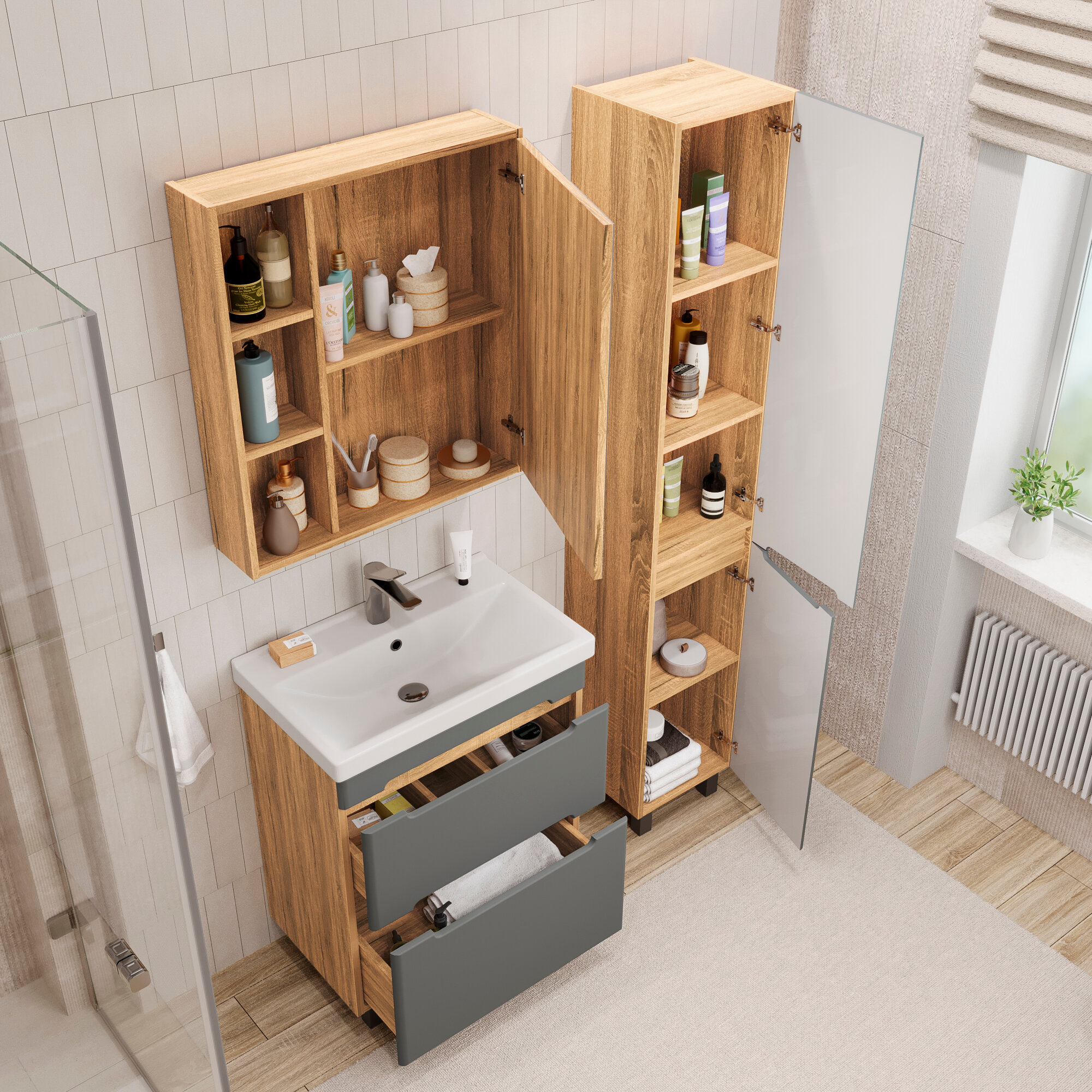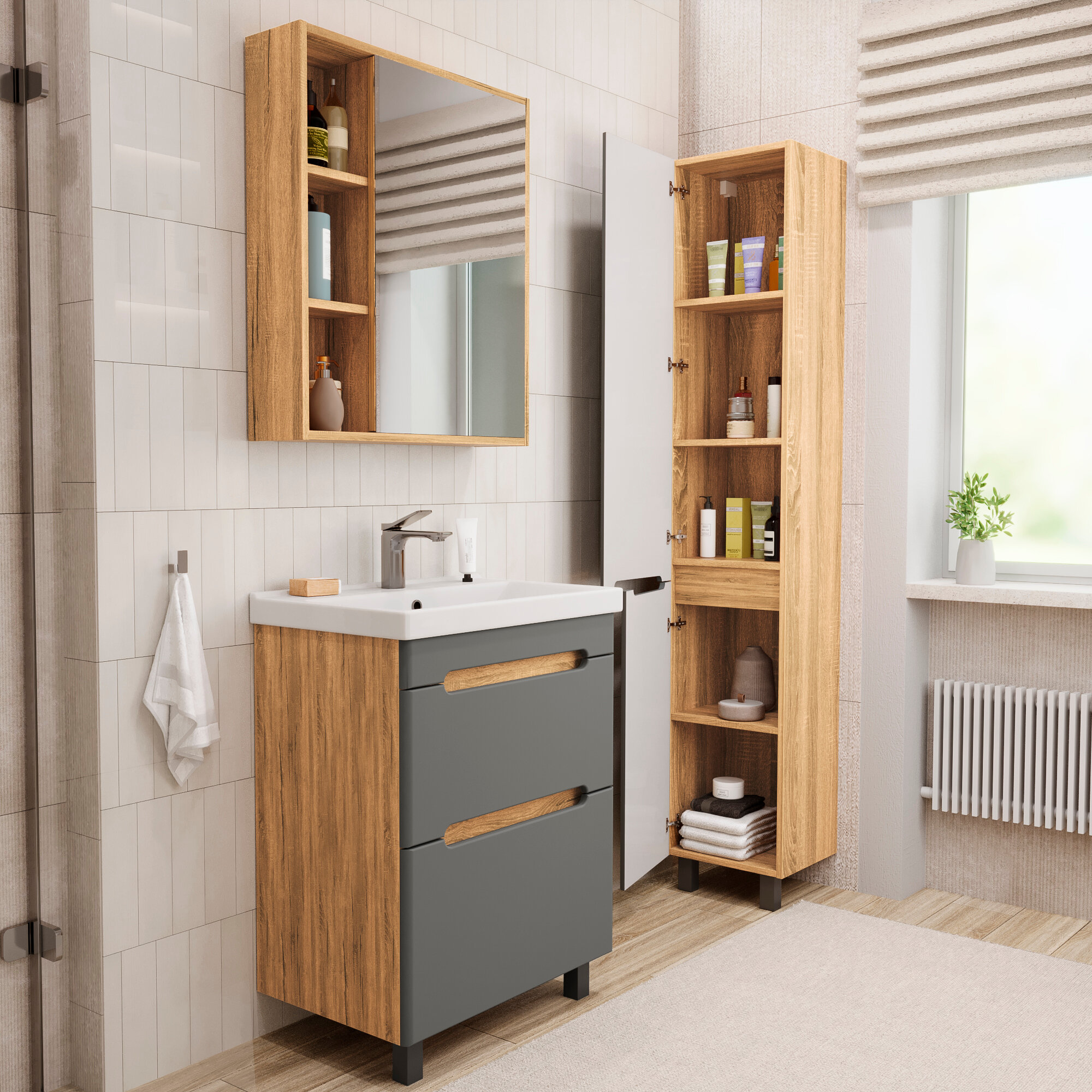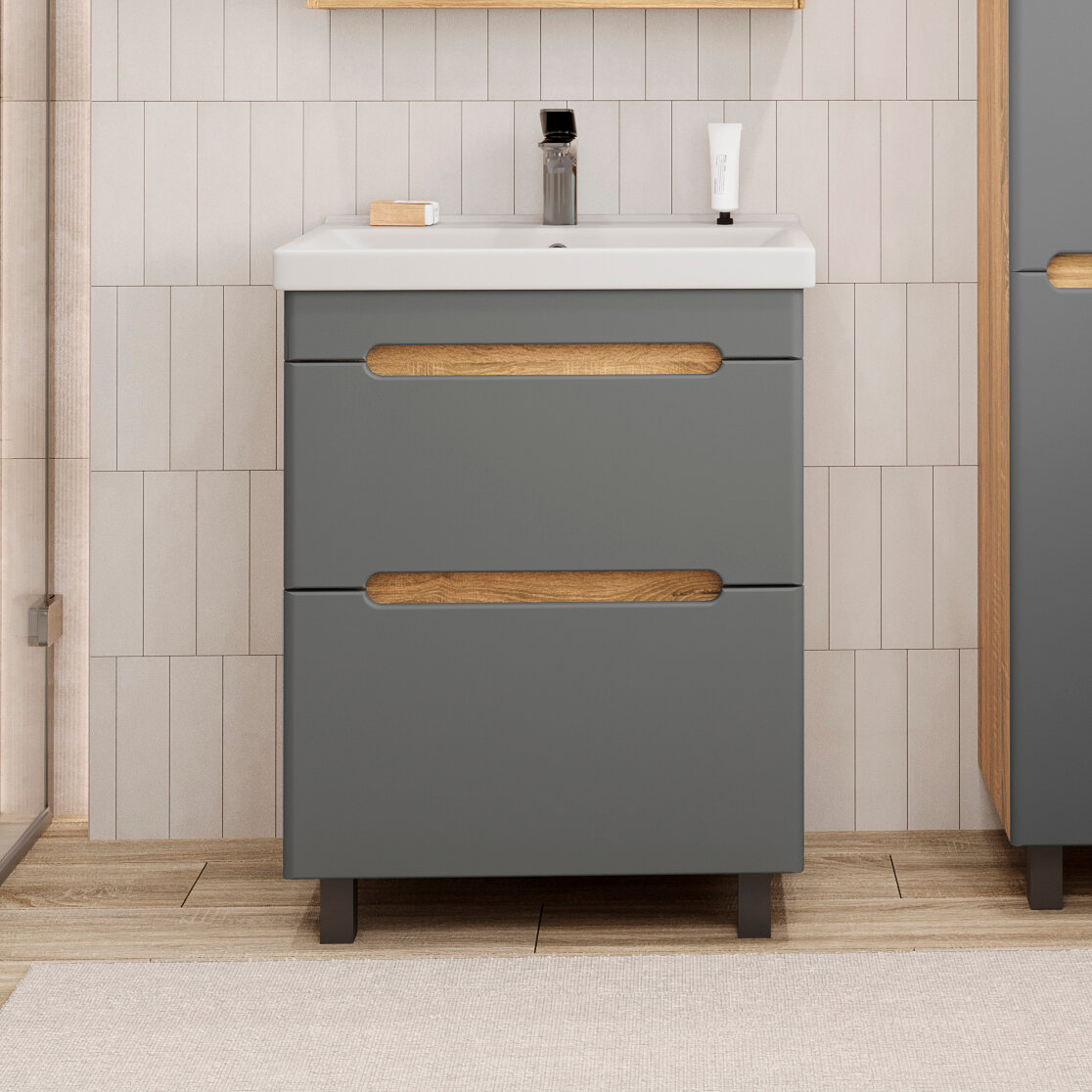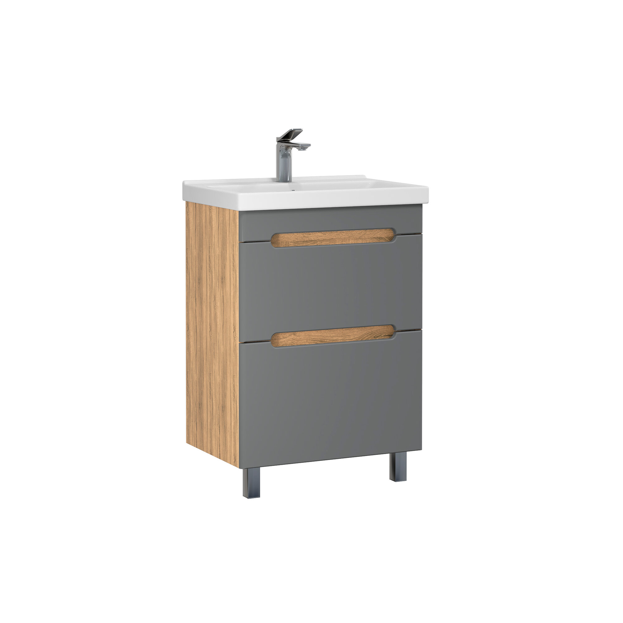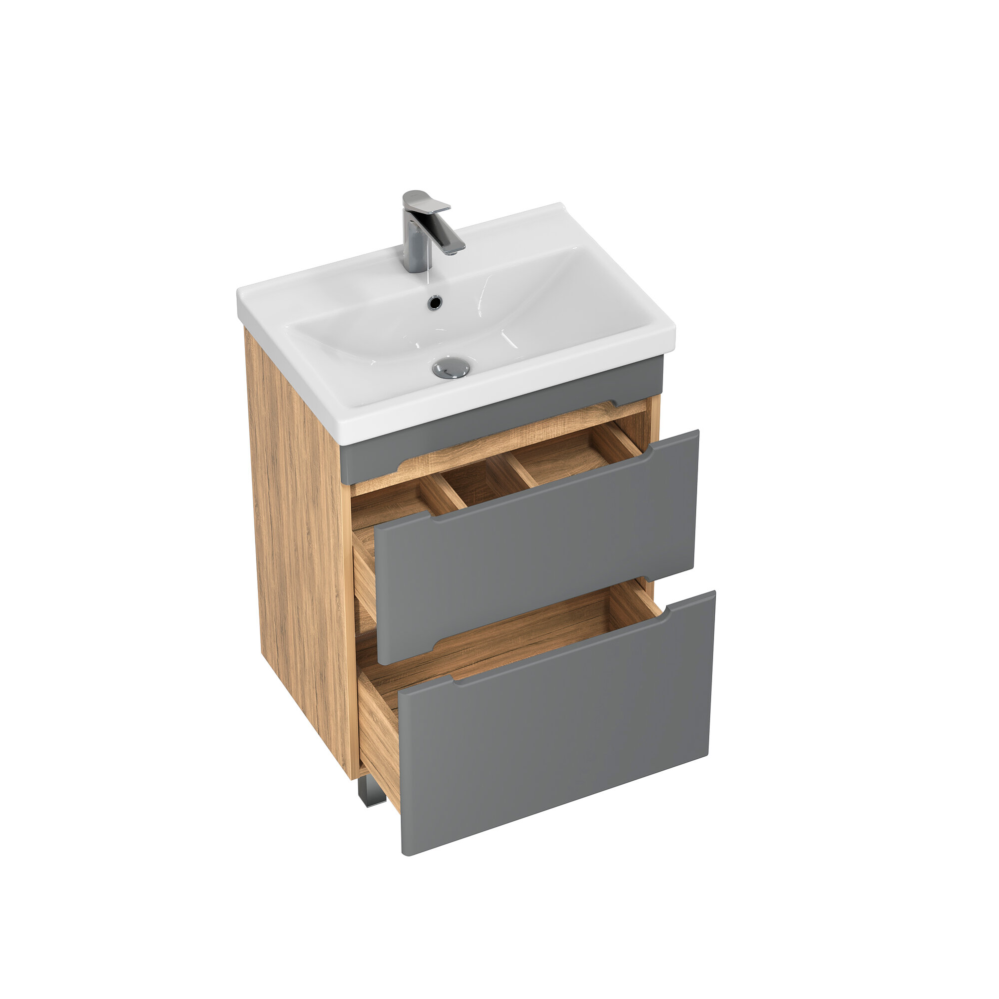 Тумба с раковиной SanStar Diva 50 напольная дуб вотан/графит софт (раковина Фест 50) 457.1-1.4.1.КФЕС