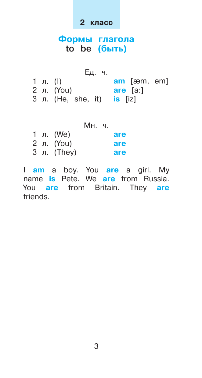 В пособии приведены все основные правила и все формы неправильных глаголов английского языка курса начальной школы. С помощью этой книги ребёнок легко поймёт и запомнит правила и формы неправильных глаголов, а также научится безошибочно применять их. Пособие можно использовать на уроках английского языка в школе и для самостоятельных занятий дома.Для начального образования.