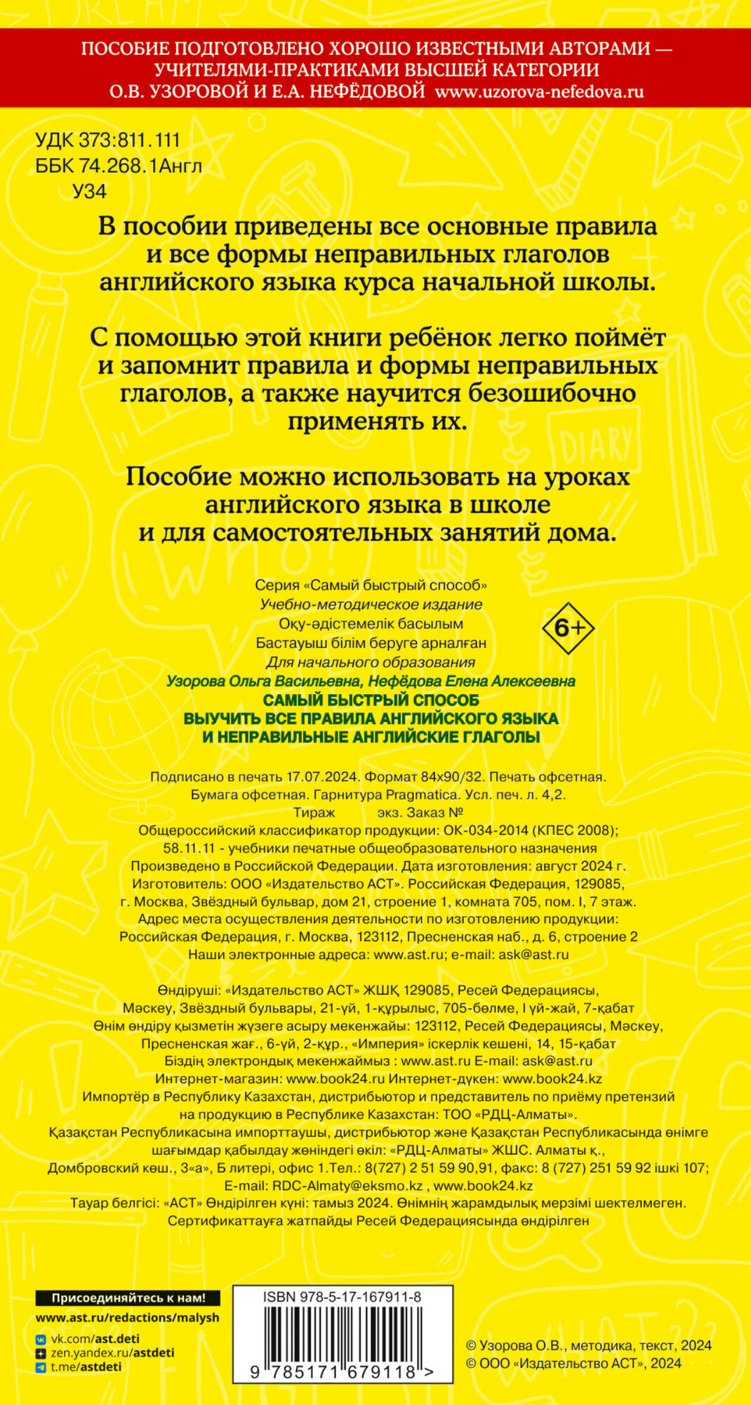 Все правила английского языка и неправильные английские глаголы. Для начальной школы (Елена Алексеевна Нефедова, Ольга Васильевна Узорова); АСТ, 2024