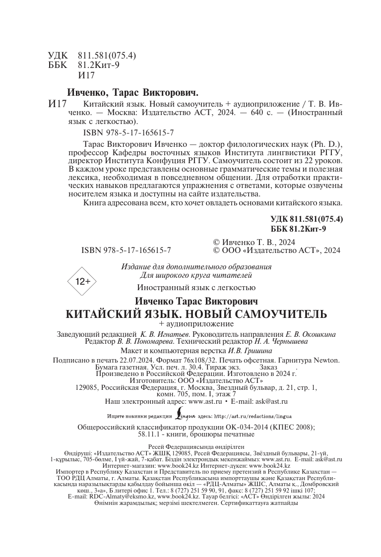 Книга: Китайский язык (Тарас Викторович Ивченко); АСТ, 2024