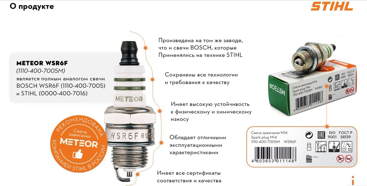 Сервис сравнения цен СкидкаГИД предлагает сравнить цены на товар «Свеча зажигания Stihl Meteor SS 161 WSR6F (11104007005M)»
