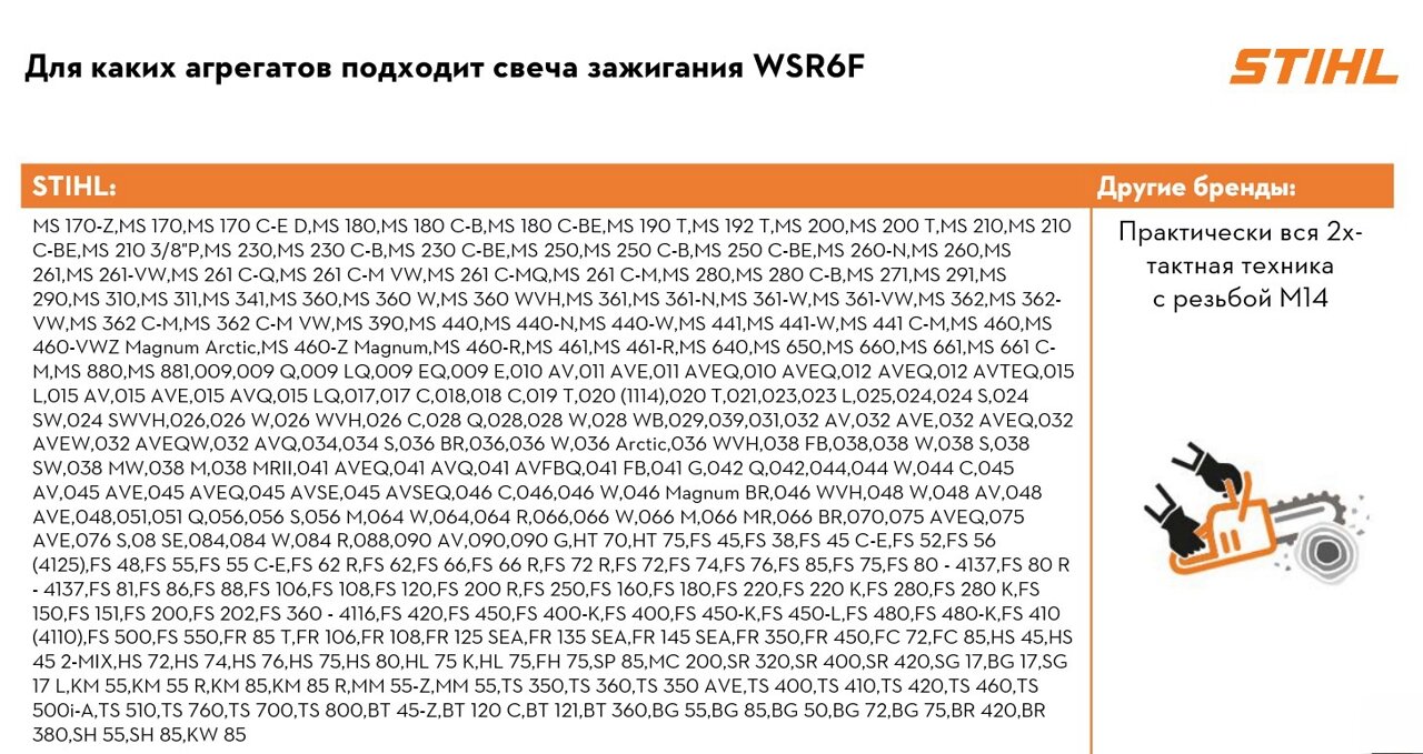 Свеча зажигания Stihl Meteor SS 161 WSR6F (11104007005M)