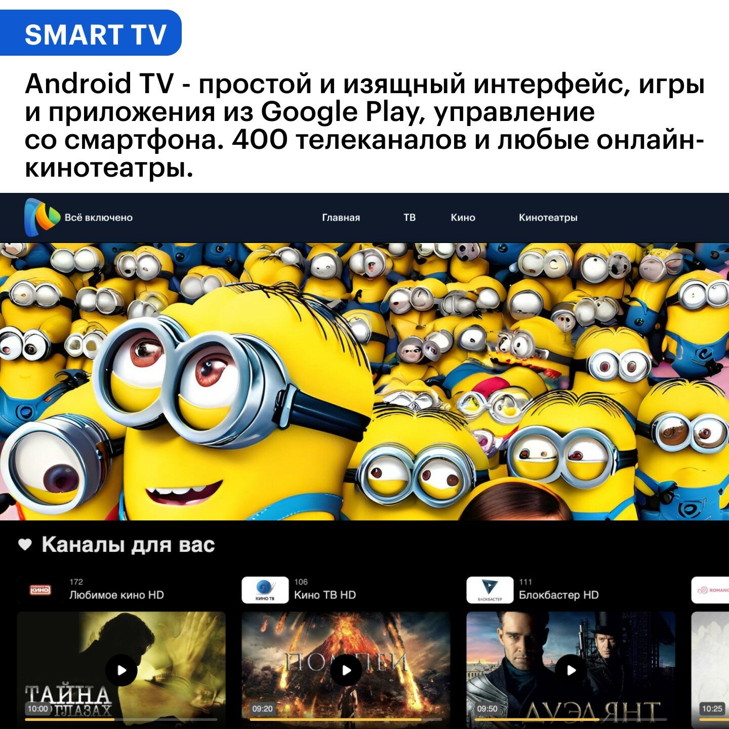 | Прочие особенности | Встроенный Wi-Fi, есть, Встроенный Bluetooth, есть, Поддержка DLNA, есть, Поддержка SMART TV, есть, Игровой режим, есть, Голосовое управление, есть, Часть умного дома, да, Совместимость с голосовыми помощниками, Google Assistant, Экосистема, Google |