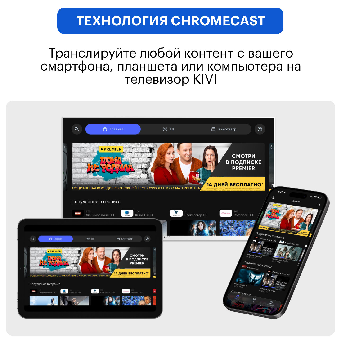 Телевизор KIVI - это реалистичное и контрастное изображение, четкий звук с технологией Dolby Audio и современный дизайн, гармонично дополняющий любой интерьер.