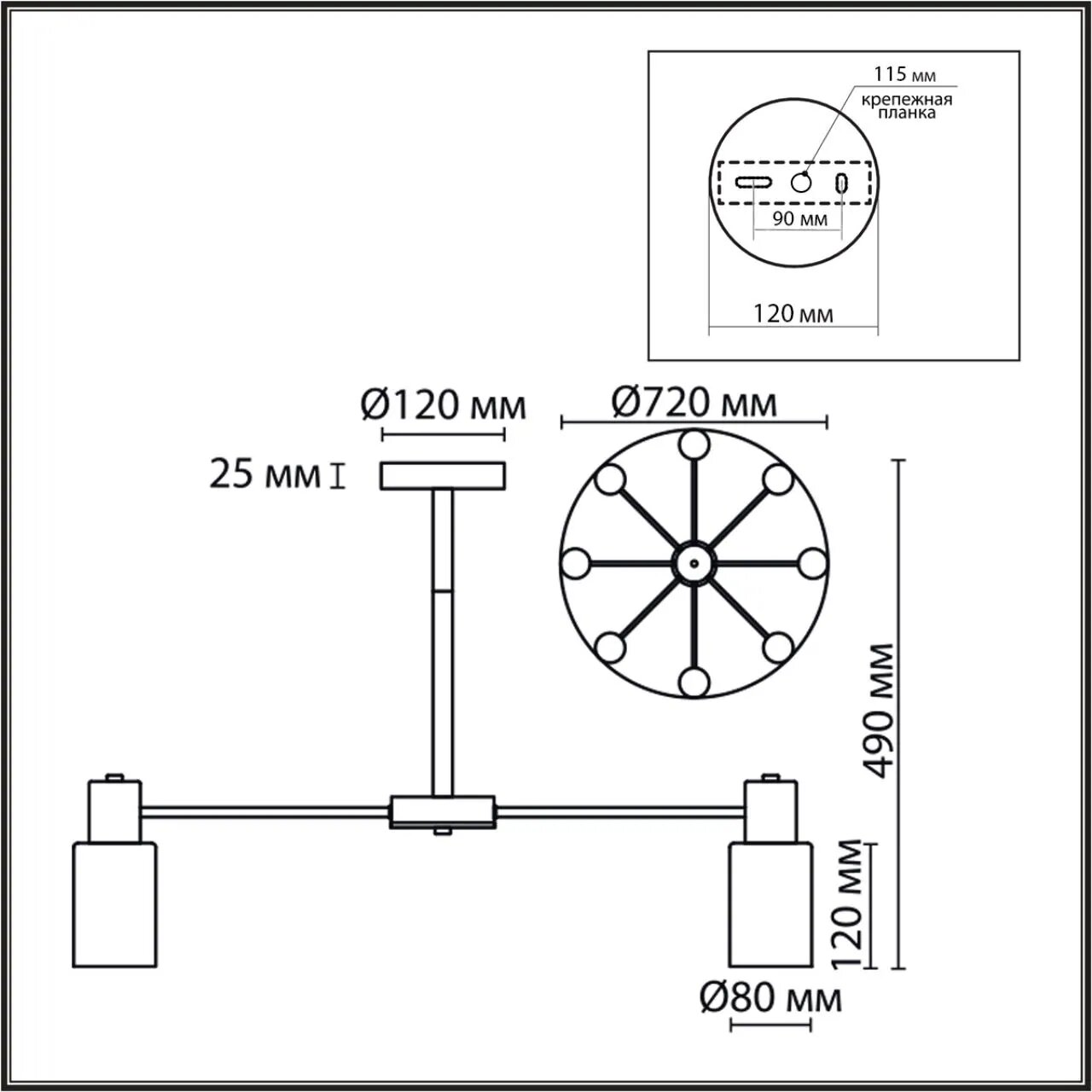 | Место установки | На потолок |