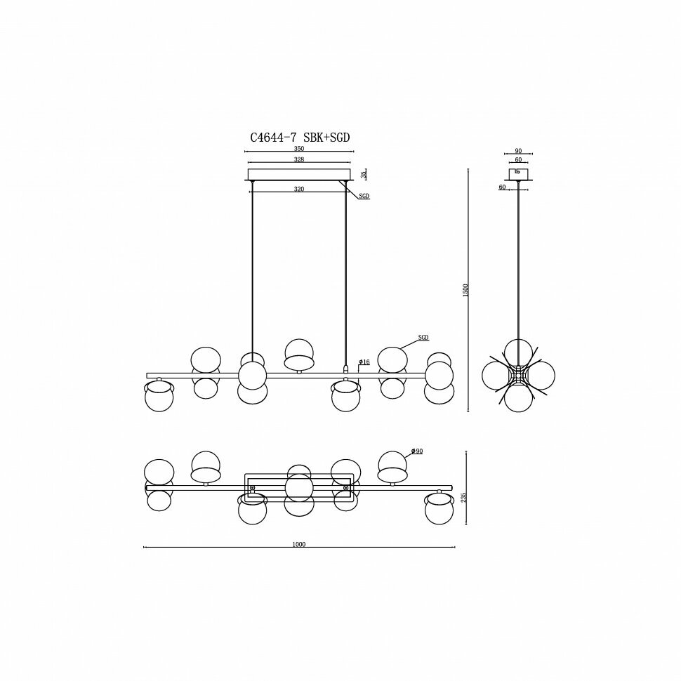 Подвесной светильник iLedex C4644-7 MBK+SGD