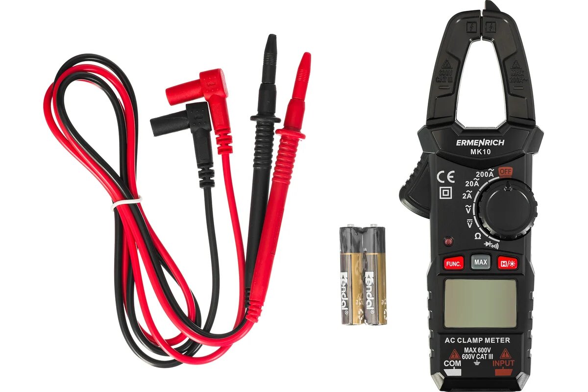 Токоизмерительные клещи Ermenrich Ping MK10 82965 – это токоизмерительные клещи, предназначенные для замеров силы тока в цепи без ее разрыва. С помощью этого надежного и безопасного инструмента также можно определить напряжение (постоянное и переменное), а также сопротивление. Расчет переменных величин прибор осуществляет по методу истинного среднеквадратичного значения (True RMS), что гарантирует высокую точность измерений. Инструмент оснащен небольшим ЖК-экраном с подсветкой для отображения результатов. Пределы измерений можно задать самостоятельно поворотным переключателем или использовать автоматический режим. При необходимости показания фиксируются на дисплее («Hold»). Прибор также запоминает предельные значения (максимумы), что облегчает относительные расчеты. Устройство оснащено дополнительными функциями, весьма полезными для диагностики. Так, с ним можно проверять проводку на обрыв и короткое замыкание, а также тестировать диоды. Ermenrich Ping MK10 работает от 2 мизинчиковых батареек. Функция автоматического отключения продлевает «жизнь» элементам питания, в случае их разрядки прибор покажет индикатор на экране. Инструмент укомплектован 2 измерительными щупами, красным и черным. Клещи сертифицированы по основным стандартам безопасности, они выдерживают перенапряжение до 600 В.Преимущества Замеры силы переменного тока без отключения электричества Функции вольтметра и амперметра Метод True RMS для определения переменных тока и напряжения ЖК-экран с подсветкой, удержание показаний («Hold»), фиксация максимумов Диодный тест, «прозвонка» проводки Питание от мизинчиковых батареек, автоотключение, индикатор разрядки