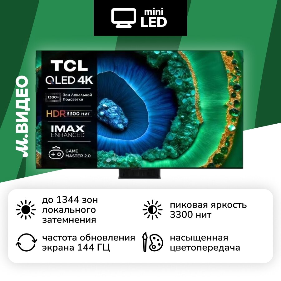 Телевизор серии C855 - это до 2304 зон локального затемнения, которые управляют освещением на уровне пикселей, отображая потрясающе реалистичные детали изображения.
