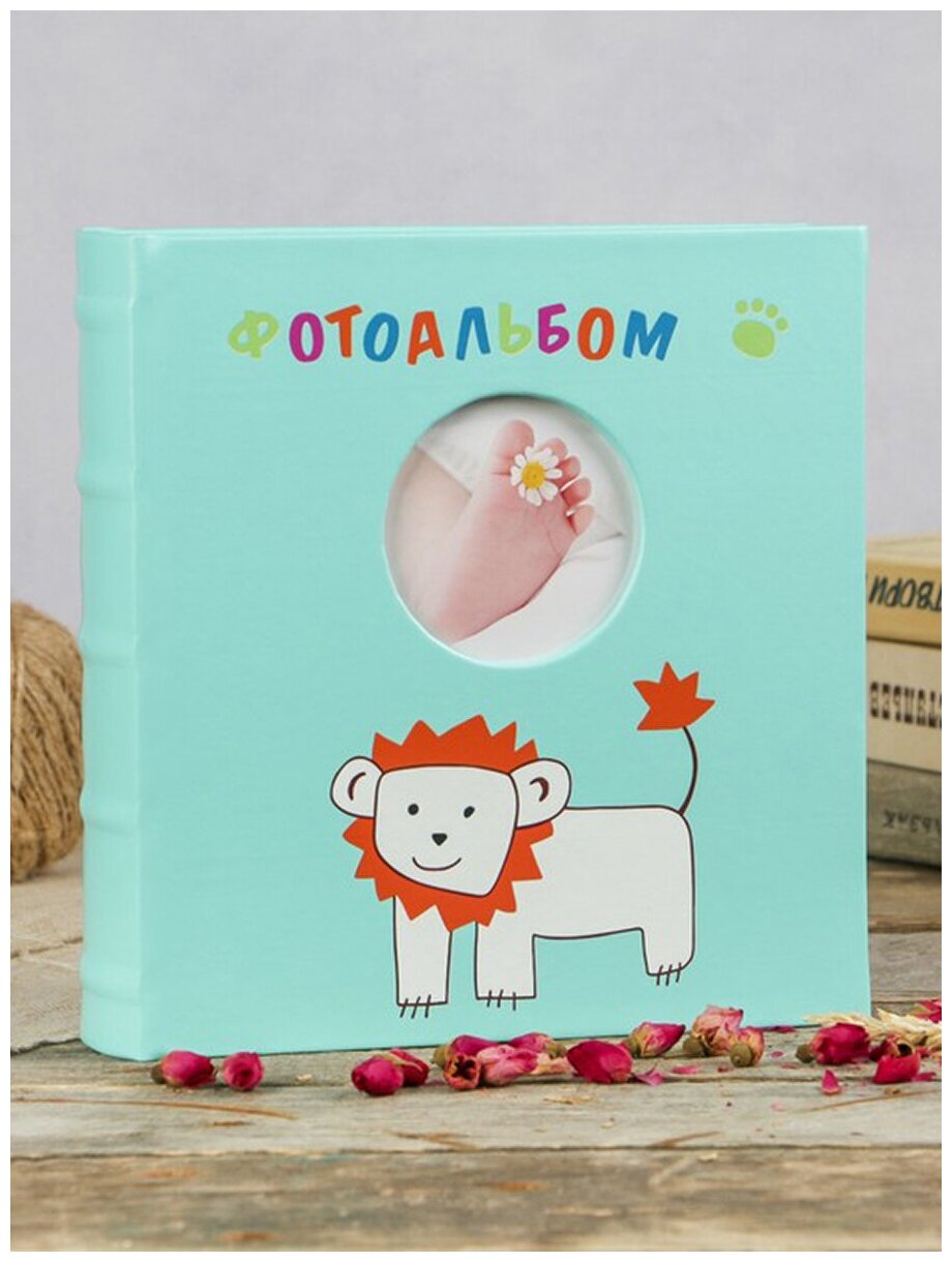 Магнитный детский фотоальбом "Львёнок" с окошком на 60 страниц 28х31 см